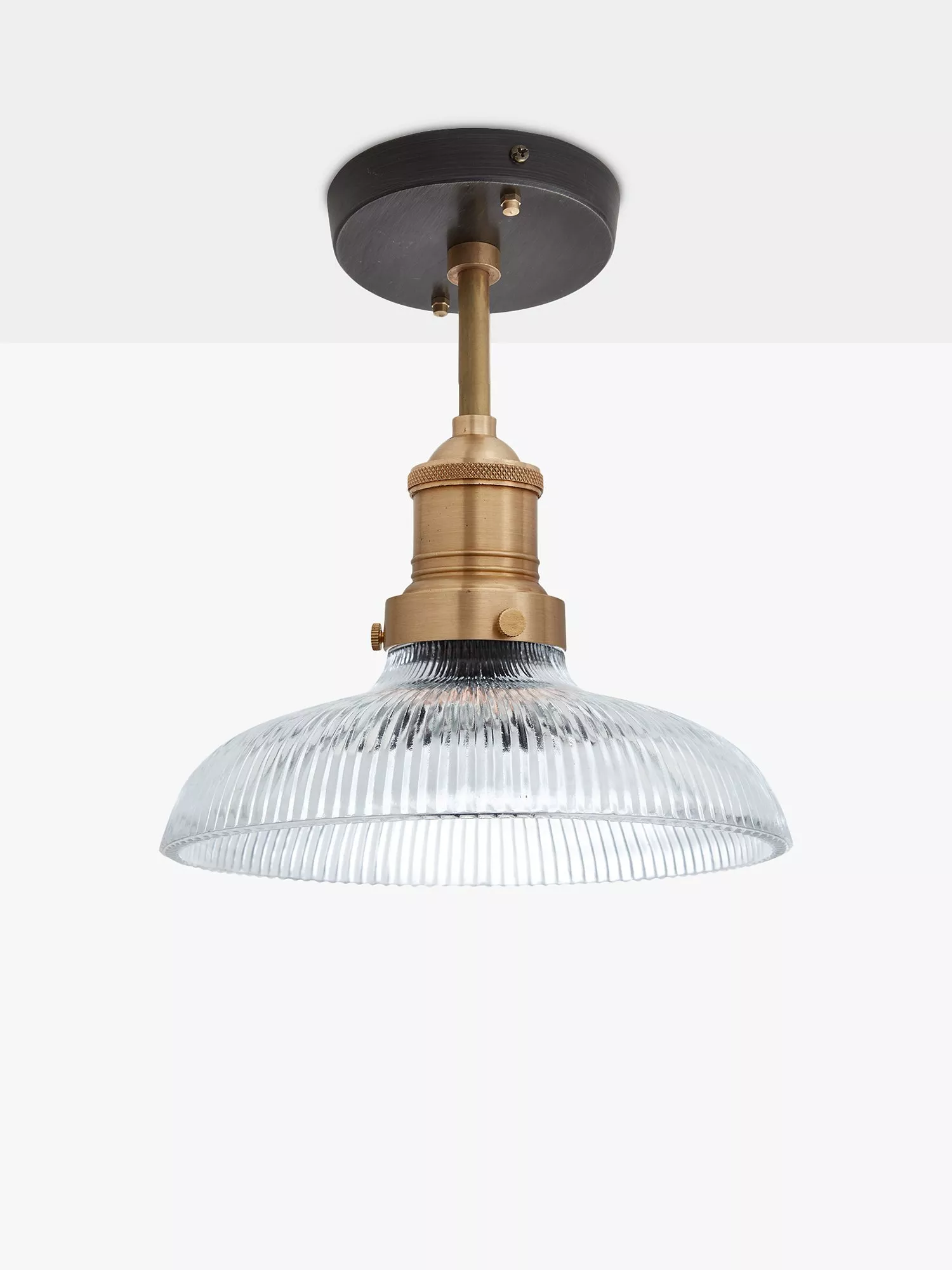 The glass shade is ribbed for a retro design with a minimalist holder that taps into the increasingly popular industrial trend. IP20 rated for indoor use only.