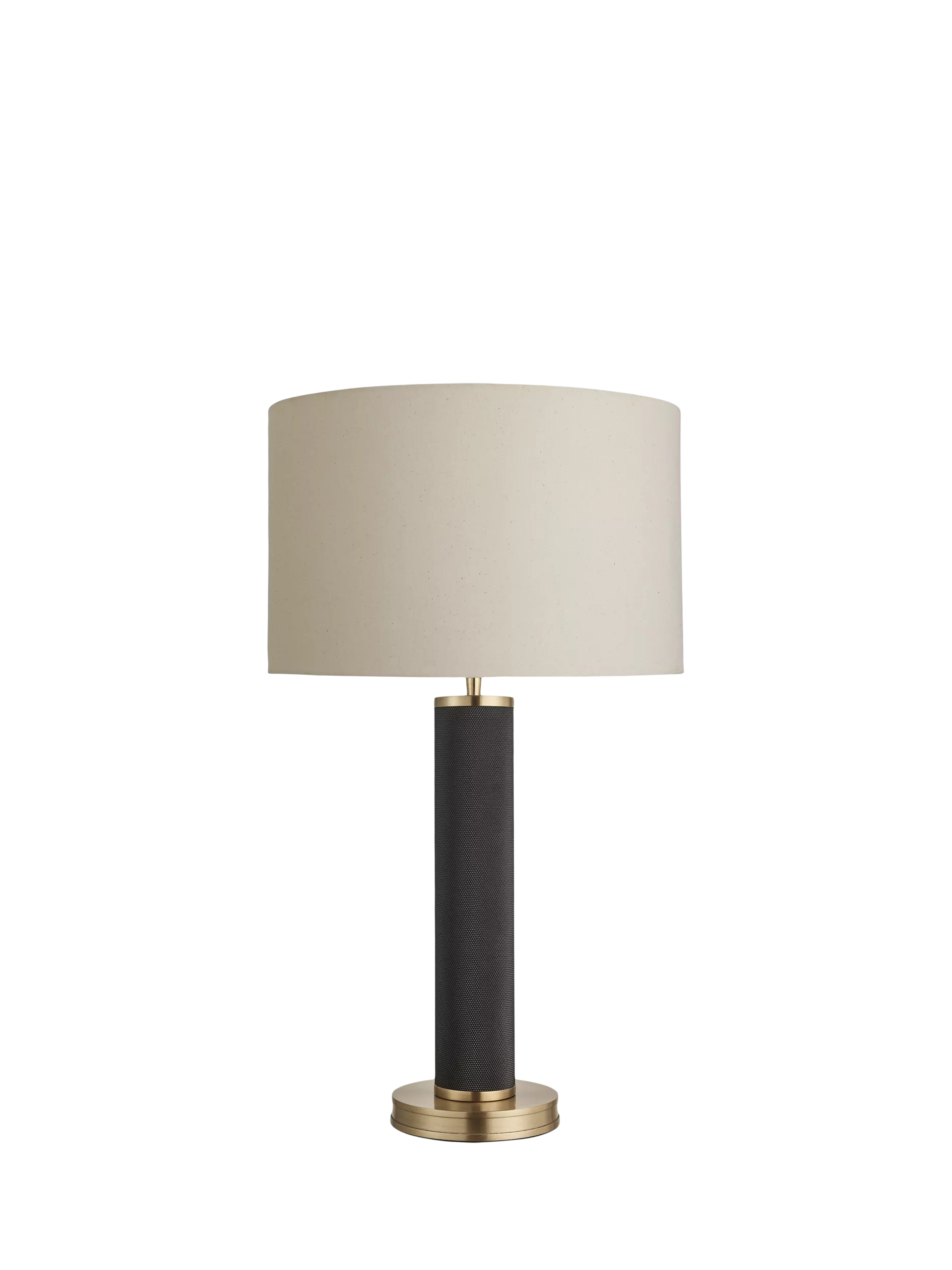 Bring a refined sense of luxury to your interior with the Knurled Pillar Table Lamp. Combining a timeless silhouette of the natural-toned lampshade with a textured brass finish, it's a versatile statement piece that adds a polished finishing touch to any room. Designed to create a soft, ambient glow, this lamp enhances warmth and depth on side tables, desks and bedside spaces.