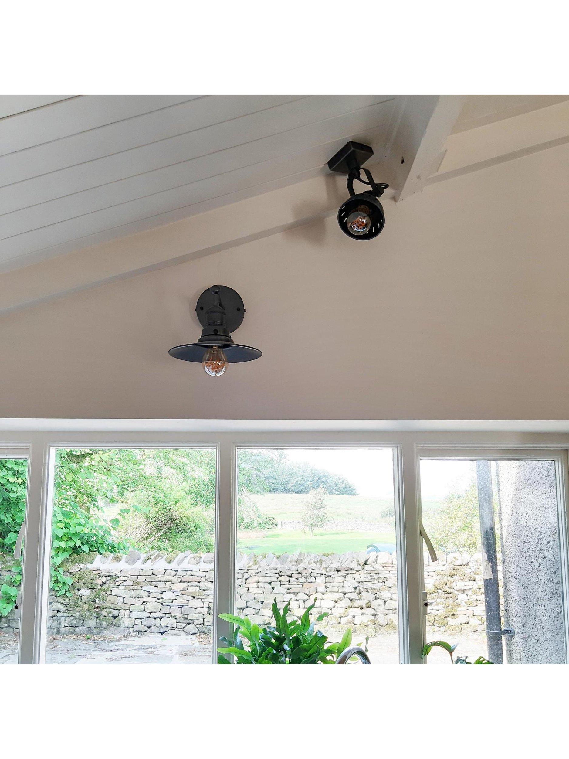Industrial-inspired spotlight that allows you to control the light thanks to the adjustable swivel head. Can be fitted as a wall light or flush-mounted on the ceiling. The retro fixture suits various spaces and interior decor. IP20 rated for indoor use only.