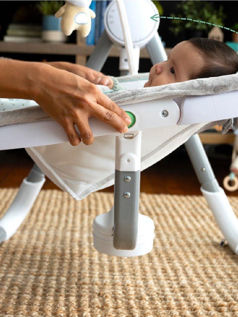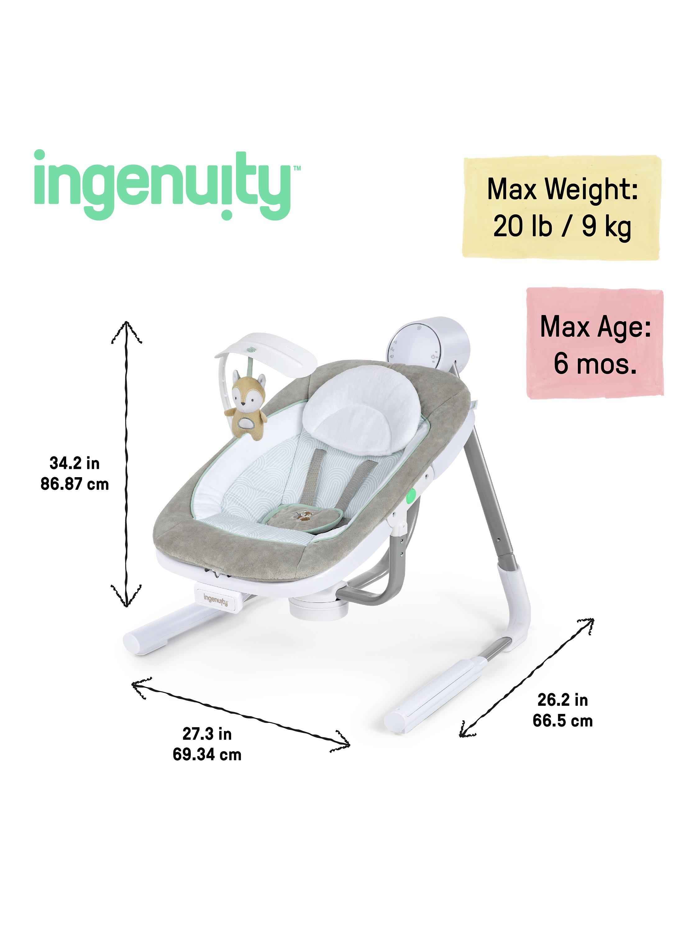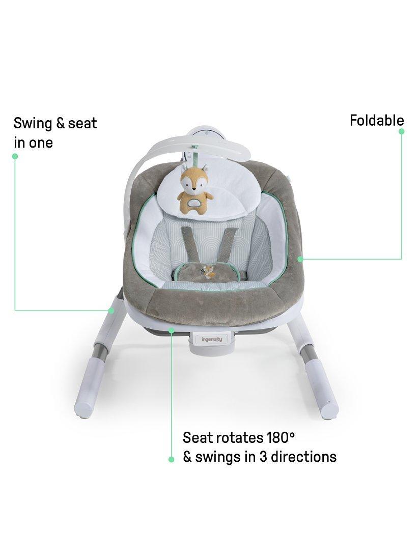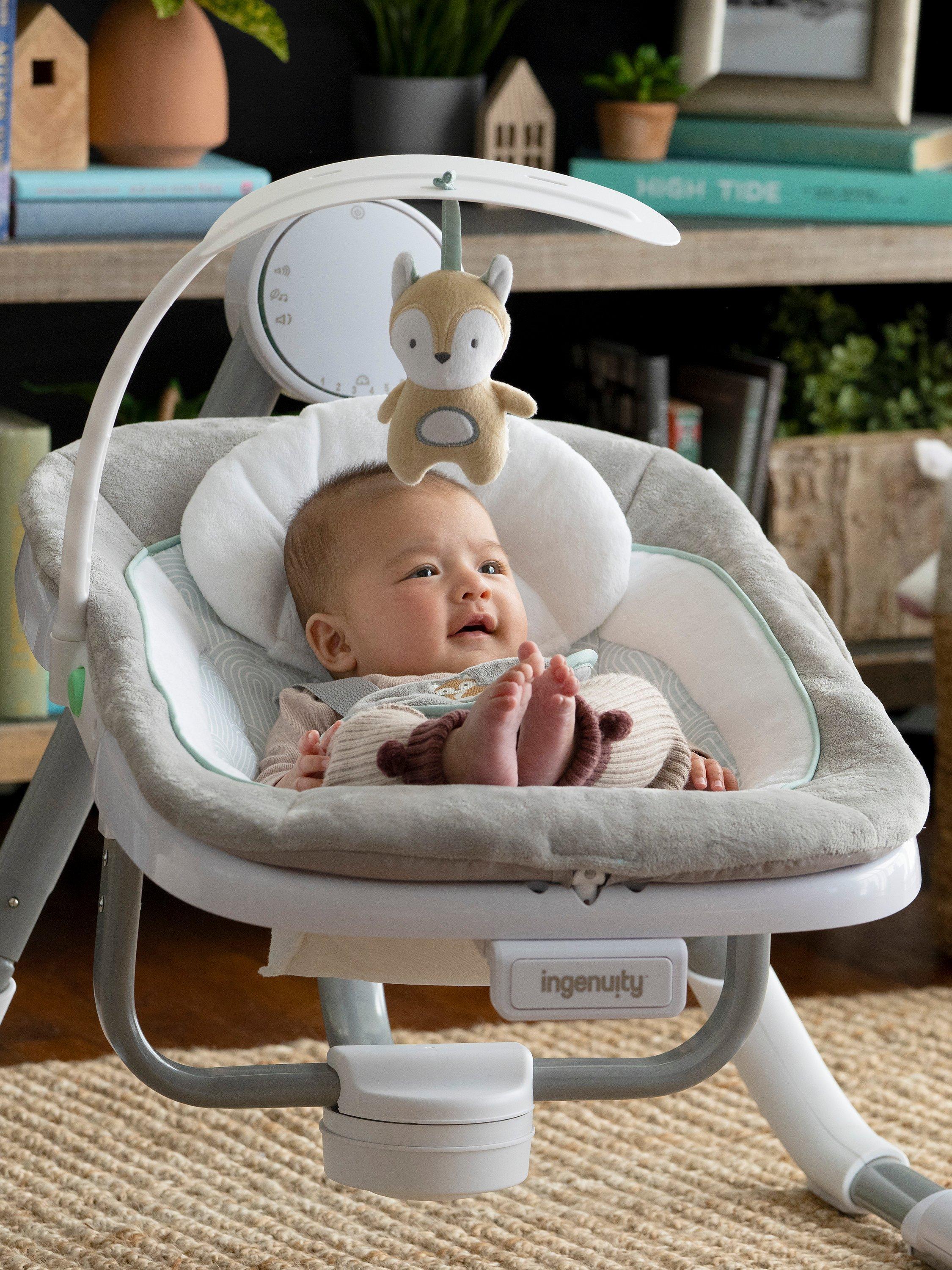 This Ingenuity Anyway Sway portable swing bouncer gives your little one a cosy place to sit, snuggle, and sway – and gives your arms a much-deserved break. This fully-loaded portable baby swing rotates 180° and swings in 3 directions, keeping baby soothed and in sight at all times.