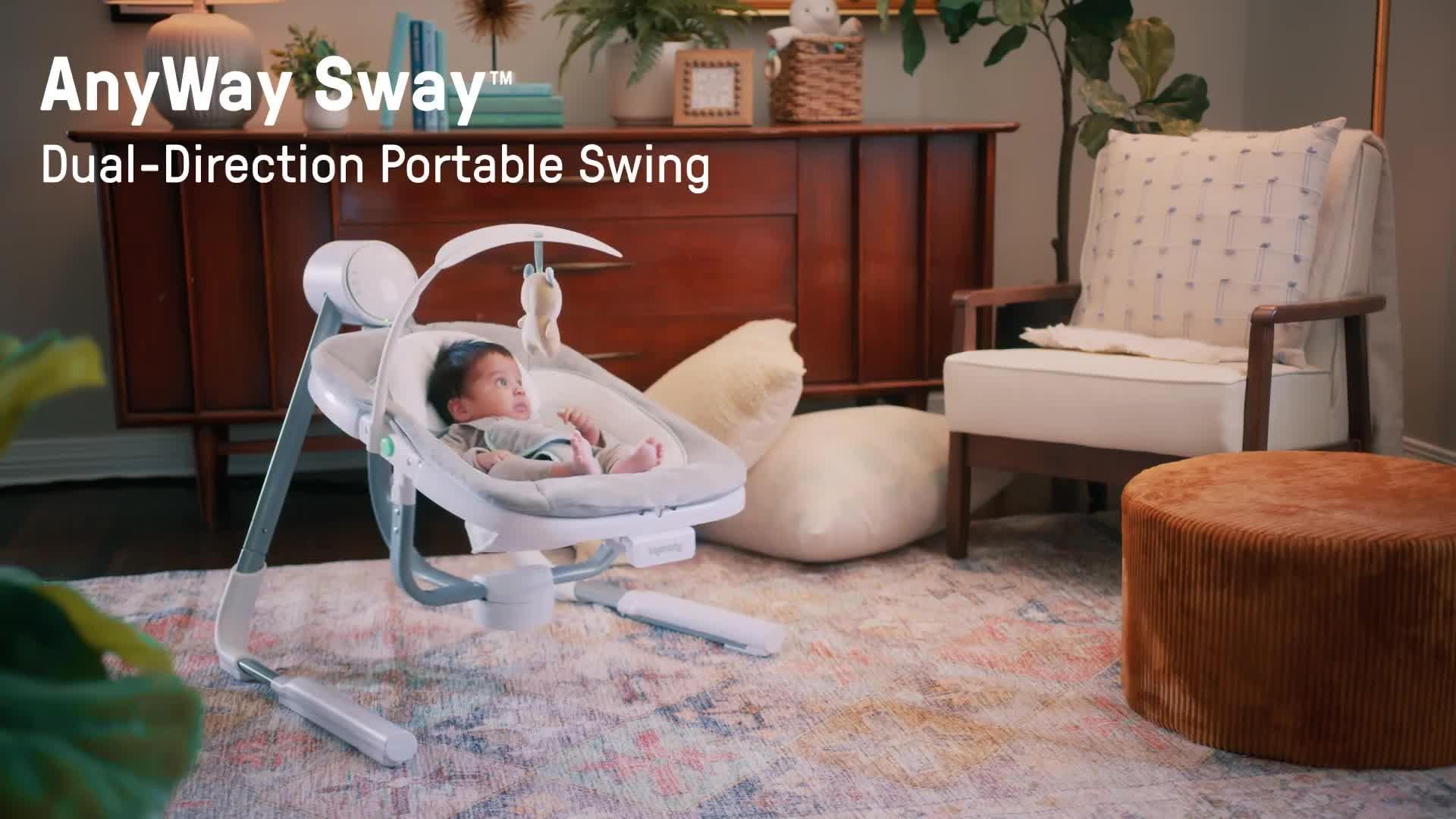 With an adjustable 5-point harness, you can feel secure knowing baby is all tucked in and secure. The quiet swing motor helps baby stay rested and undisturbed, while the GentleTouch pad allows you to play 16 different melodies, 2 nature sounds, or white noise at your choice of volume. You can plug in the Anyway Sway using the battery-saving electric USB PowerAdapt cord – and its compact, foldable design makes the swing easily portable and simple to store. Use from birth to 9 months.