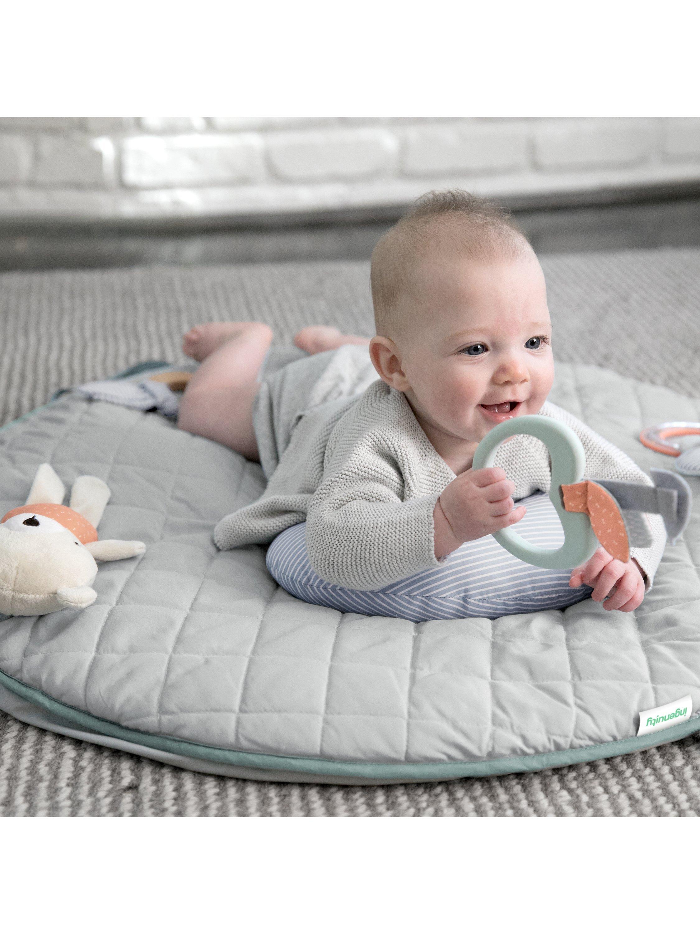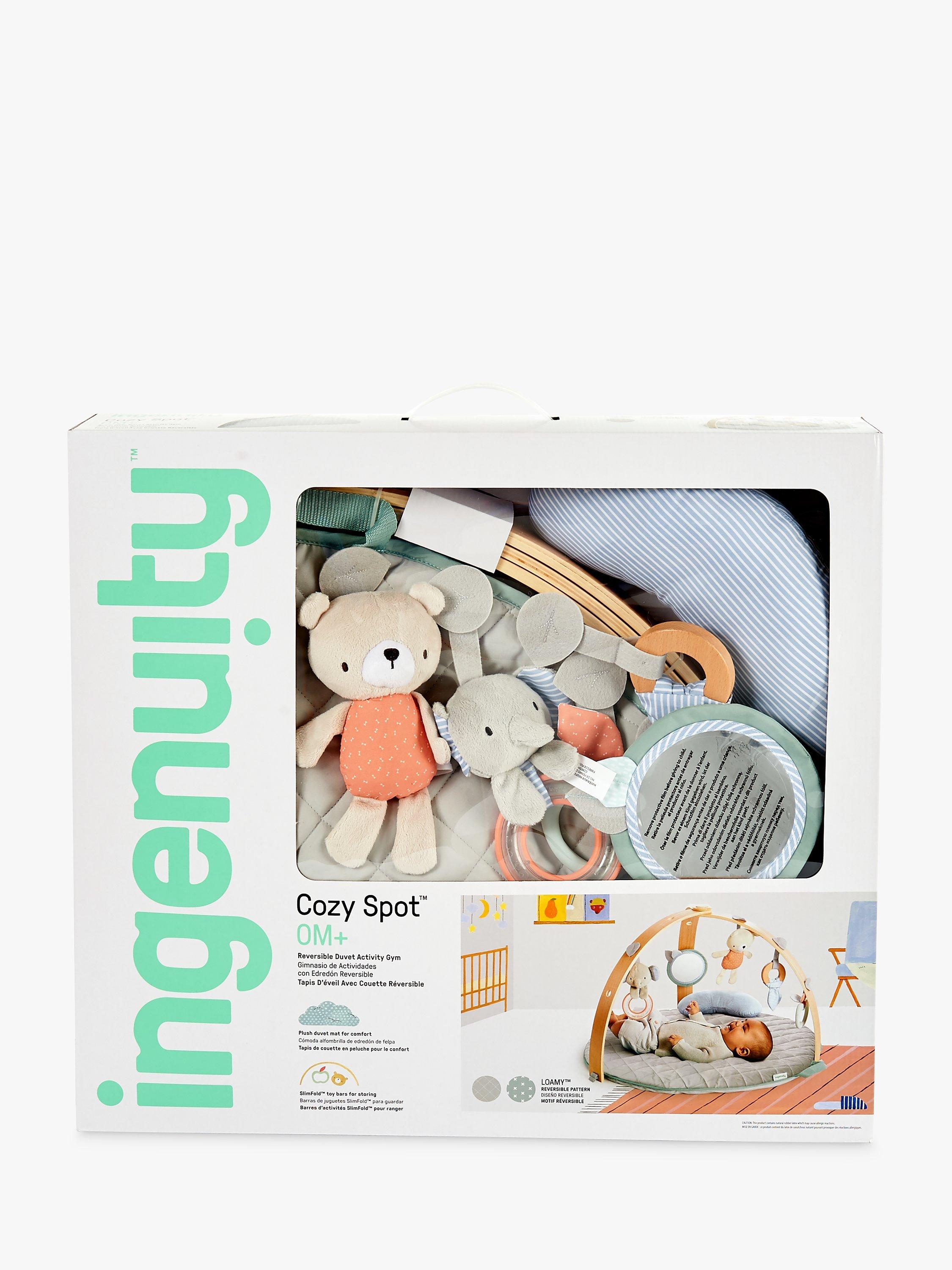 Give your baby the cosiest spot to stretch out and play. The Ingenuity Cozy Spot features a patent-pending duvet design that’s so soft it’ll feel like your baby is playing on a cloud. You can create a comfy and safe spot for your little one even on hard floor surfaces! The natural wooden toy bar and reversible printed mat are designed to blend beautifully with your home decor.