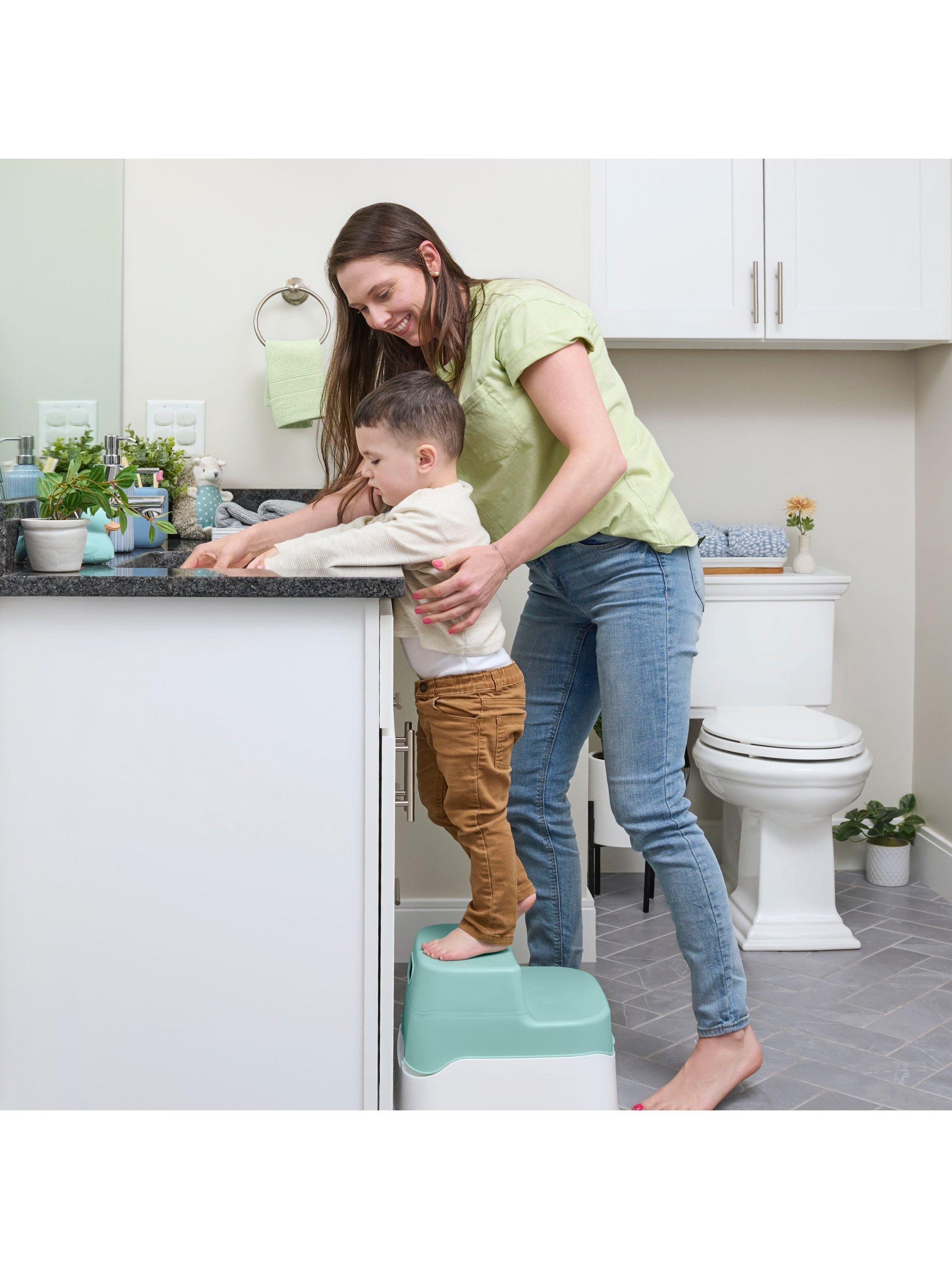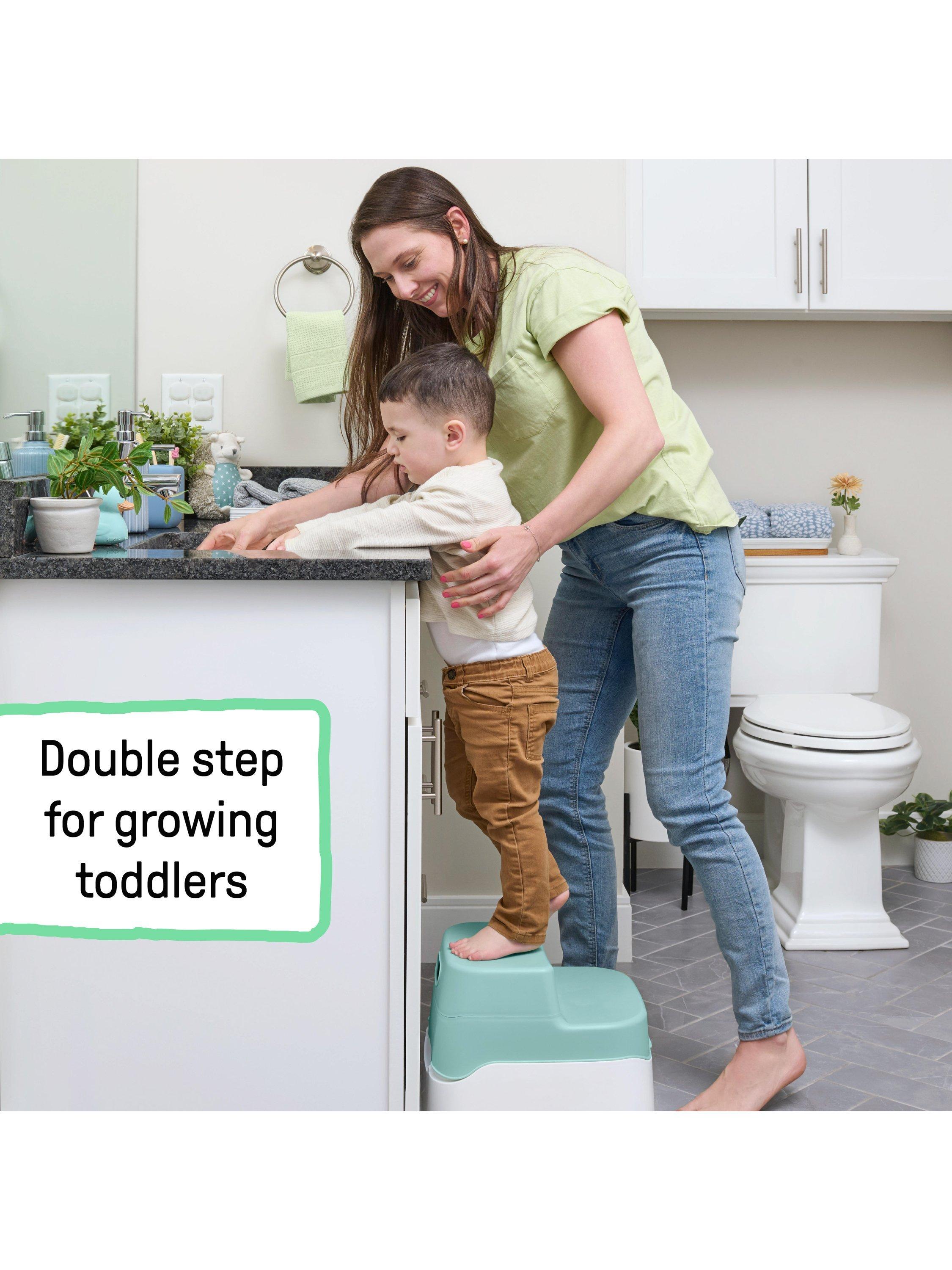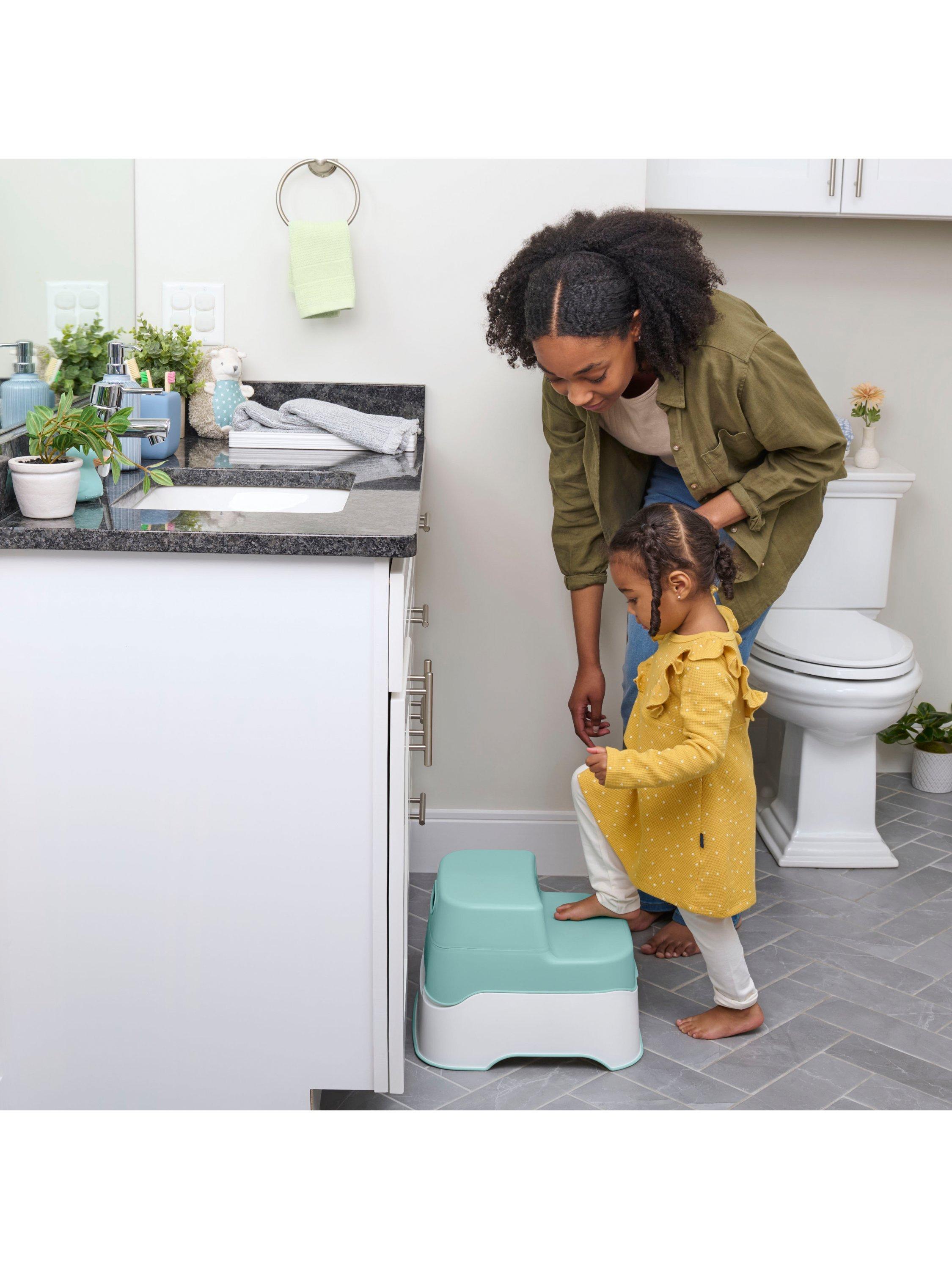 This potty comes equipped with a removable pot with a pour spout for easy clean up and less messy potty training. When it's time to transition from the toddler potty to the adult toilet, simply remove the potty topper and place it onto the adult-sized toilet. Next, close the lid to convert this potty into a double-step stool to help your child reach any standard adult-sized toilet and bathroom sink. Plus, it's got a non-skid bottom for your child's safety.