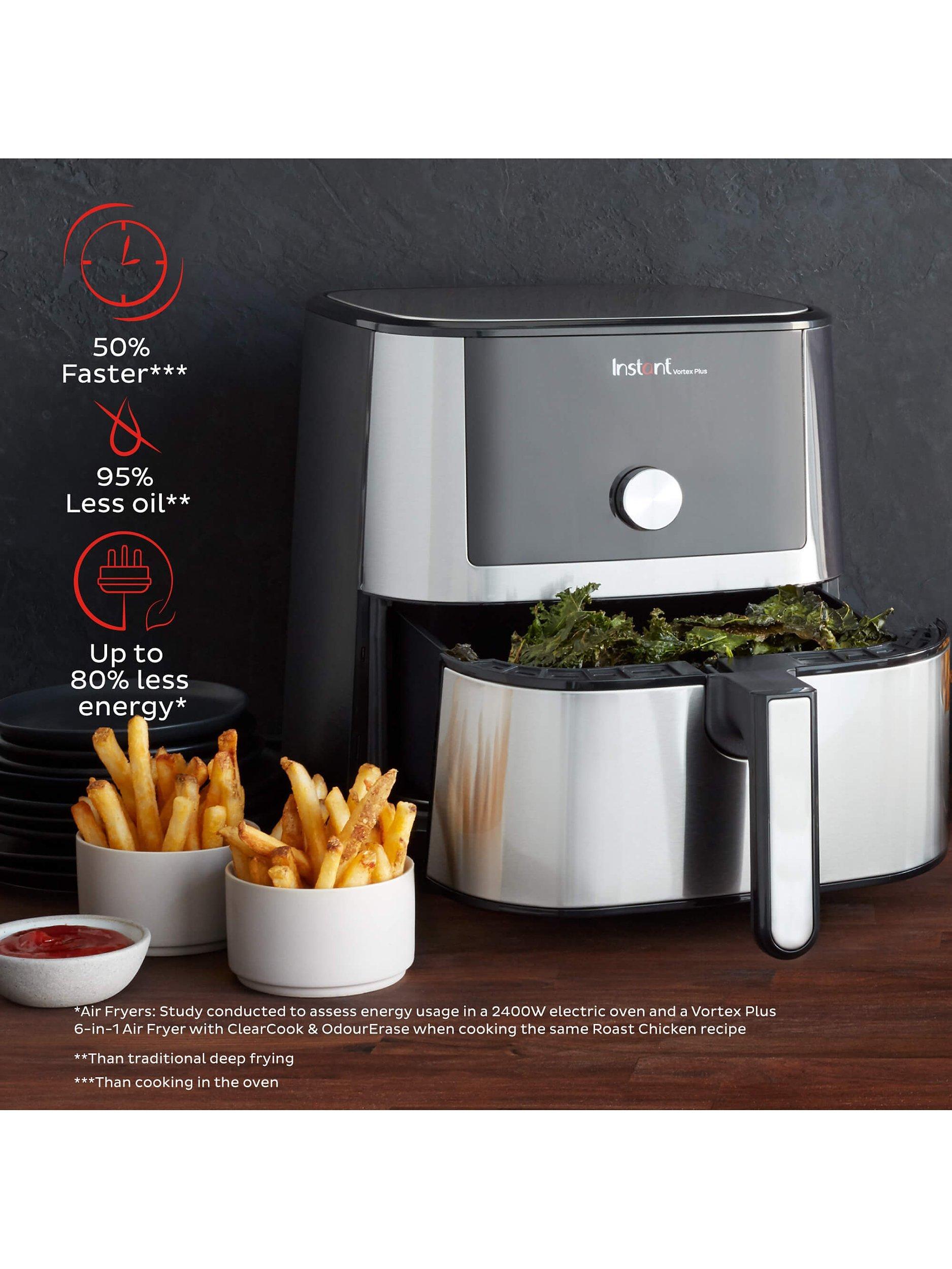 *Air Fryers: Study conducted to assess energy usage in a 2400W electric oven and Vortex Plus 6-in-1 Air Fryer with ClearCook & OdourErase when cooking the same Roast Chicken recipe.