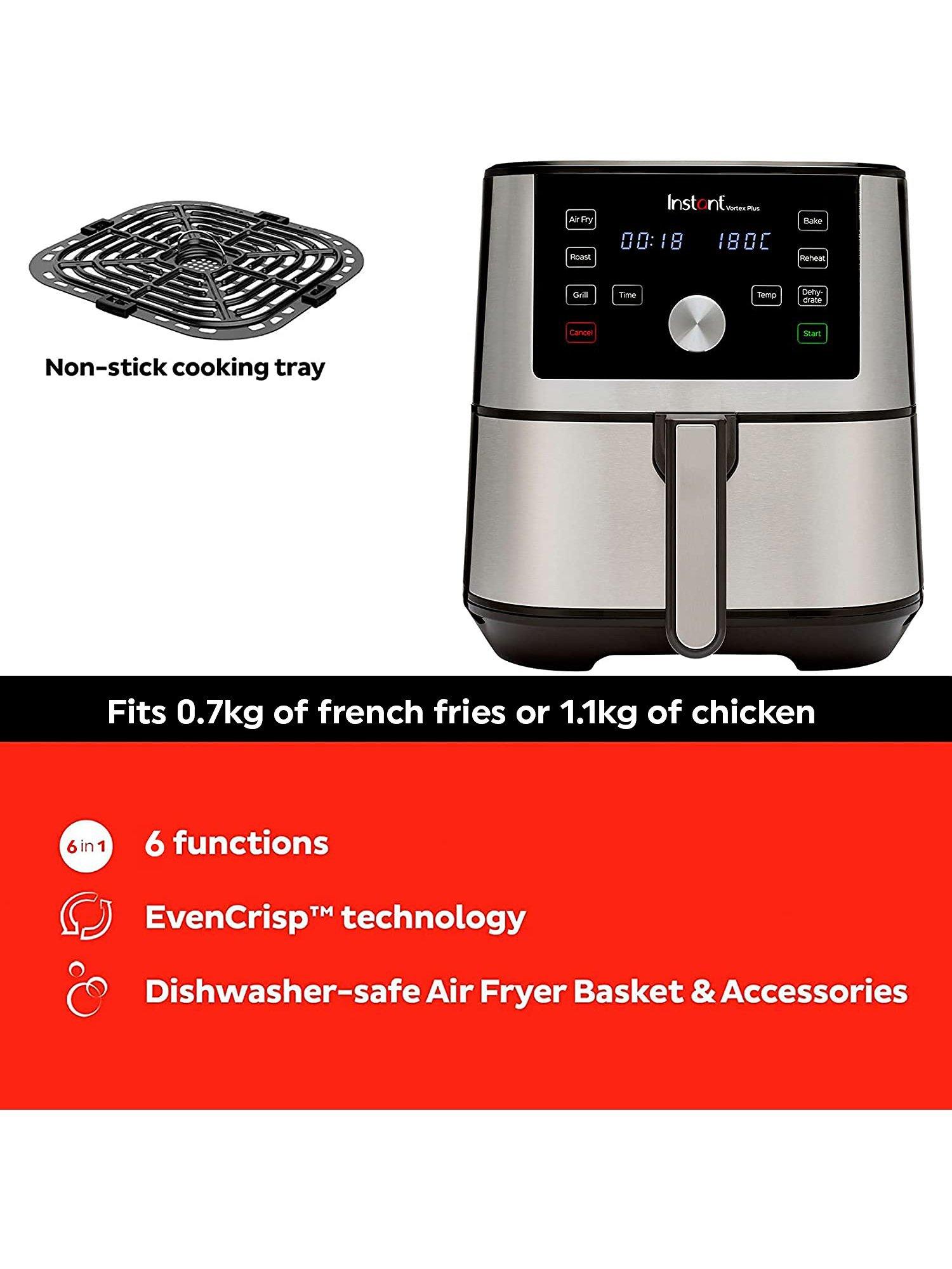 The 3.8L capacity has space for up to 4 portions of chips, an 18.5 cm baking tin or a 1.1kg whole chicken.
