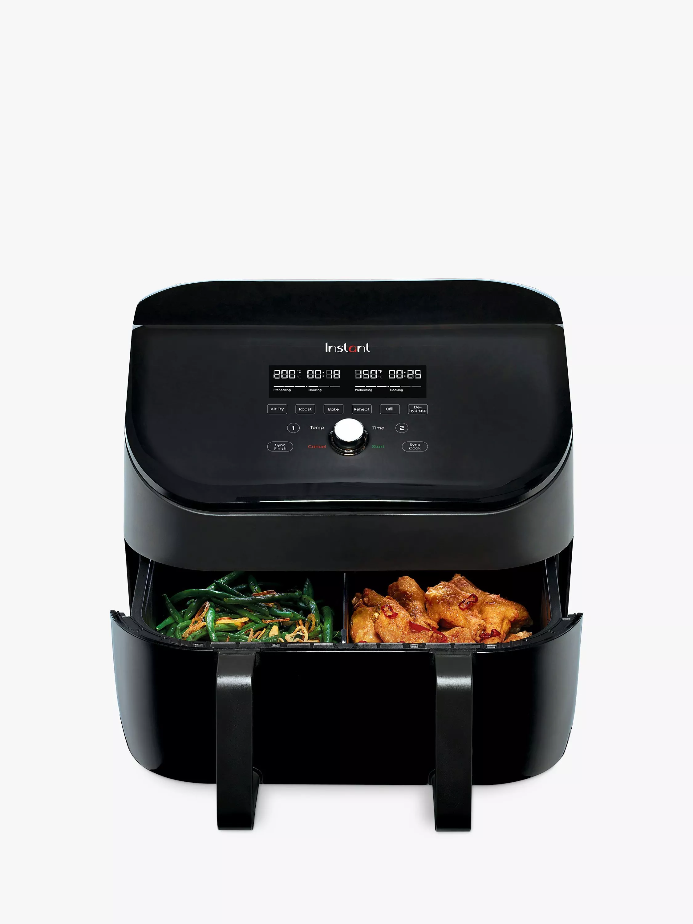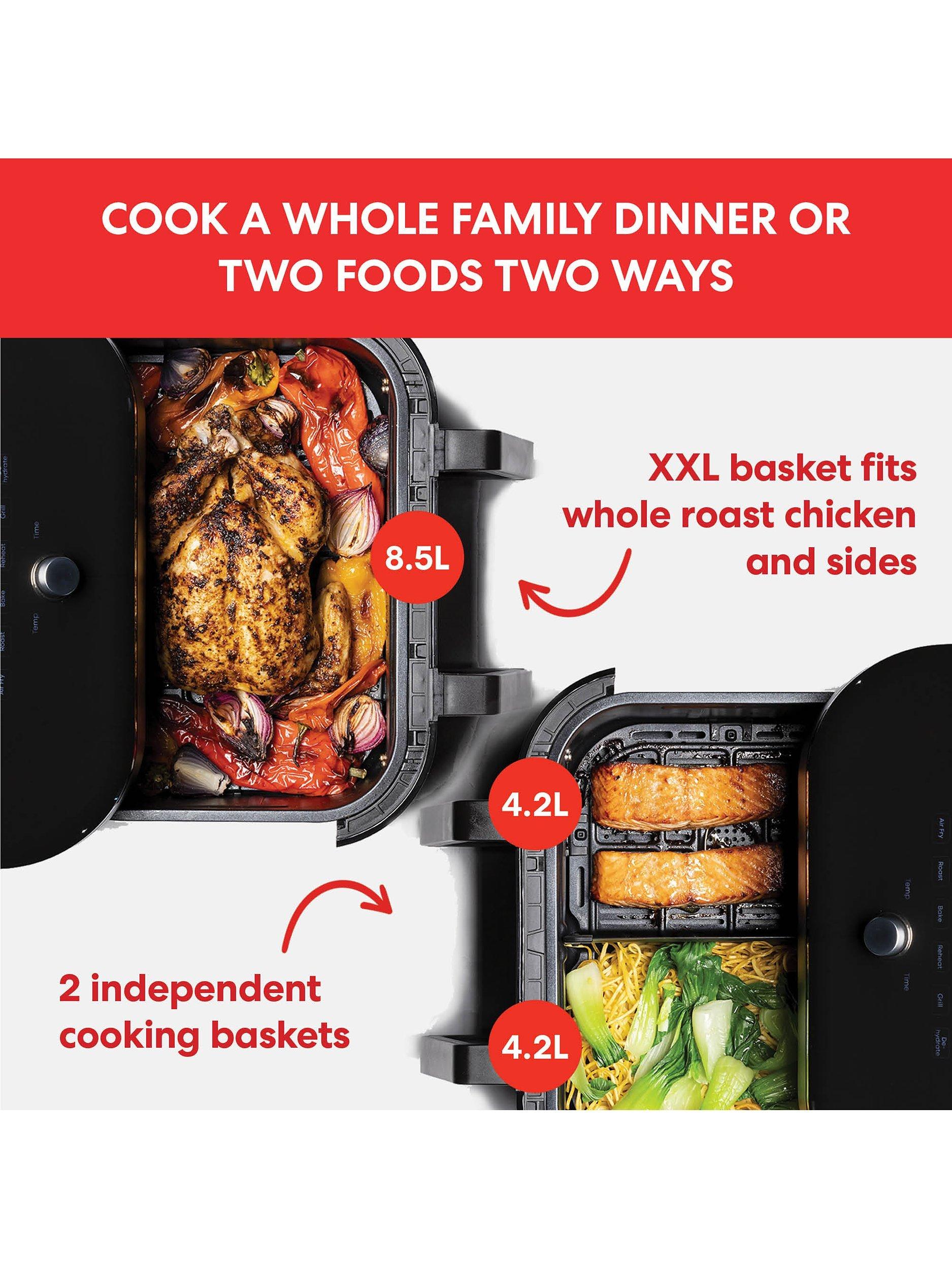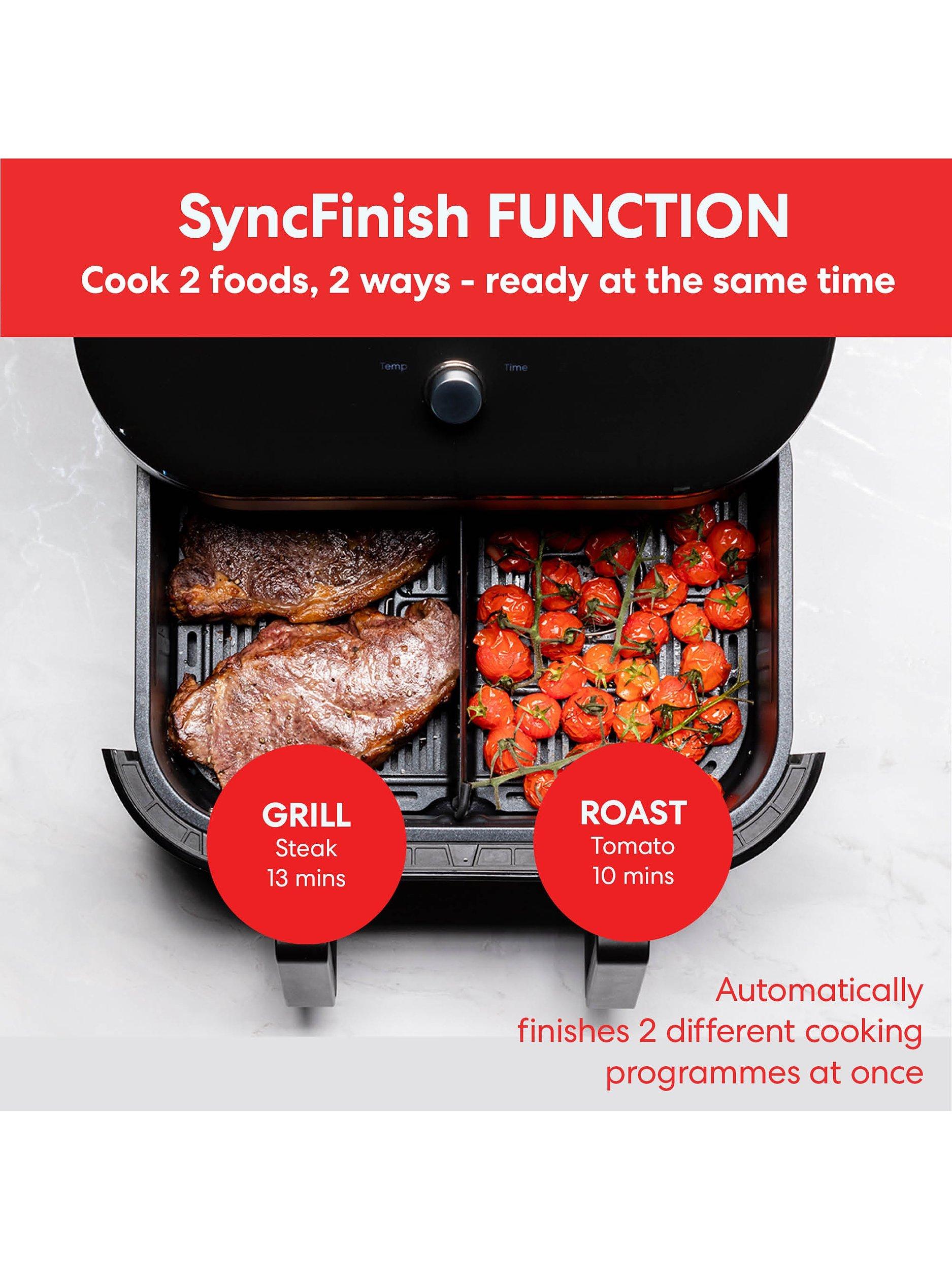 Independent cooking baskets with separate controls for each and handy SyncFinish function so both foods are ready at the same time.