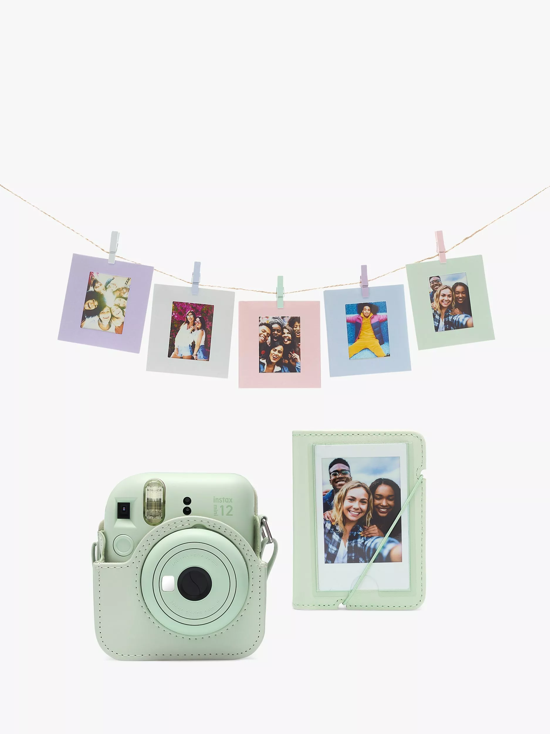 This fabulous, colour co-ordinated accessory kit features a stylish camera case with adjustable shoulder strap, a 29 mini film photo album, 10 pack of photo cards with colour matching pegs and hanging twine. You’ll radiate delight whether snapping, albuming or displaying! It’s compatible with the Instax Mini 12 camera which is sold separately.