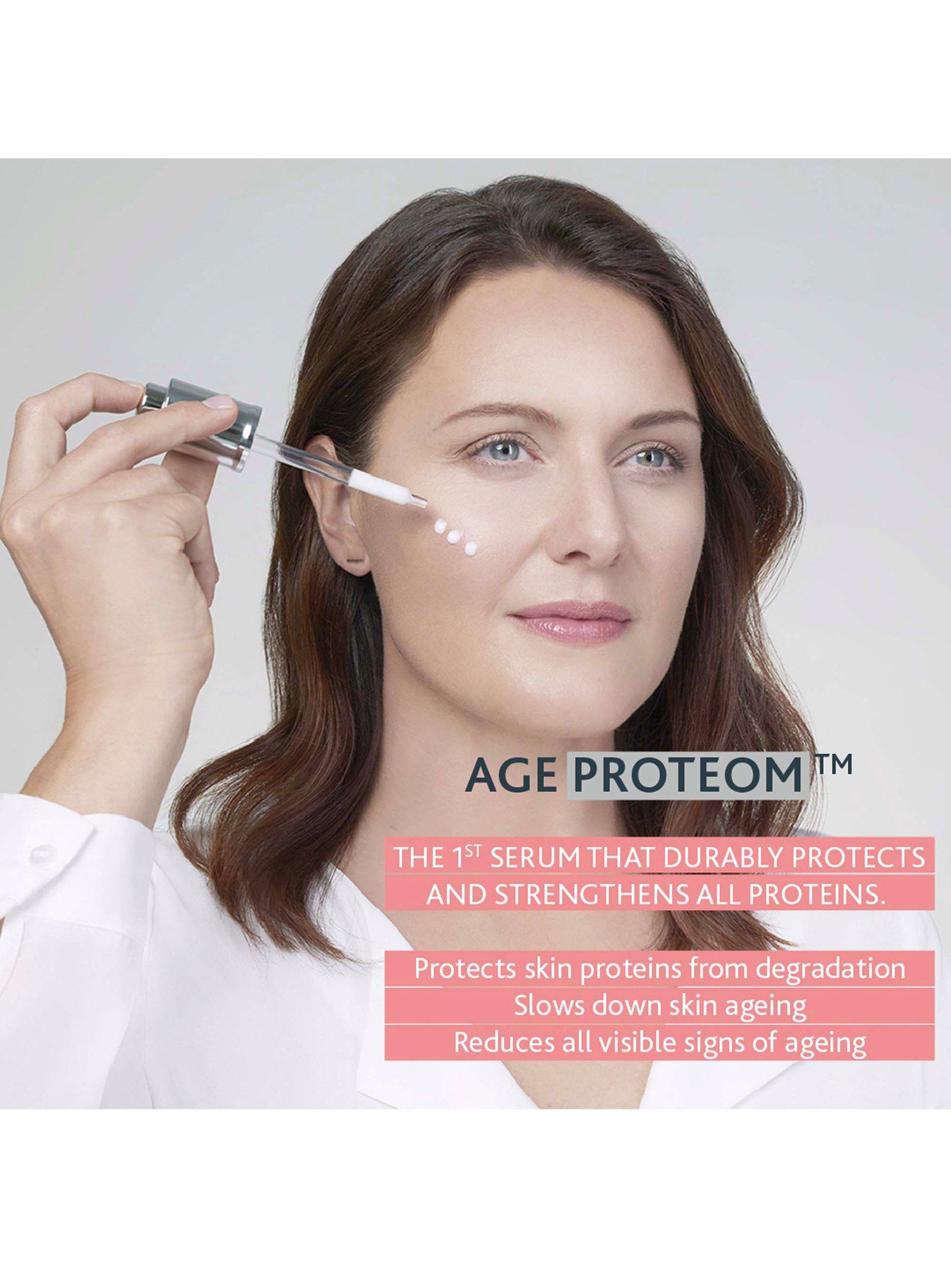 A unique approach to skin longevity: Proteins are the skin's second main component after water. They play a vital role in maintaining skin's firmness, tone, radiance, evenness, and density. Over time, proteins like collagen, elastin, and keratin degrade, accelerating skin ageing. Age Proteom™ Advanced Serum is the first formula specifically designed to protect the complete set of proteins in your skin, thanks to super antioxidants snow bacteria molecules that go further to act as a physical shield to protect the proteome, ensuring long-lasting health, resilience, and vitality.