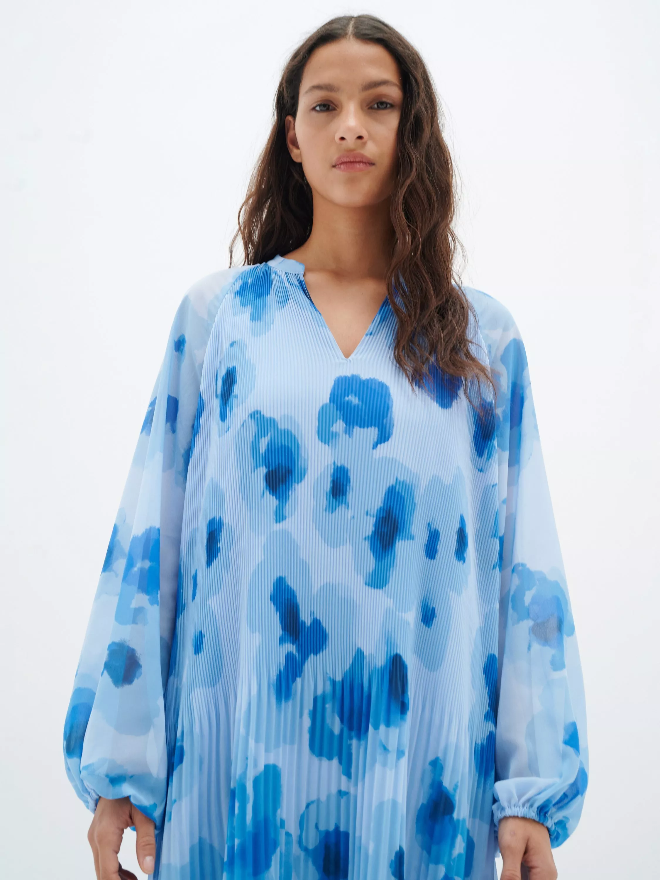 In a smock shape with pleated detailing through the skirt, this knee length dress from InWear is made using a light breezy fabric. With a v-neckline and oversized full-length sleeves, this style is detailed with a beautiful floral print.
