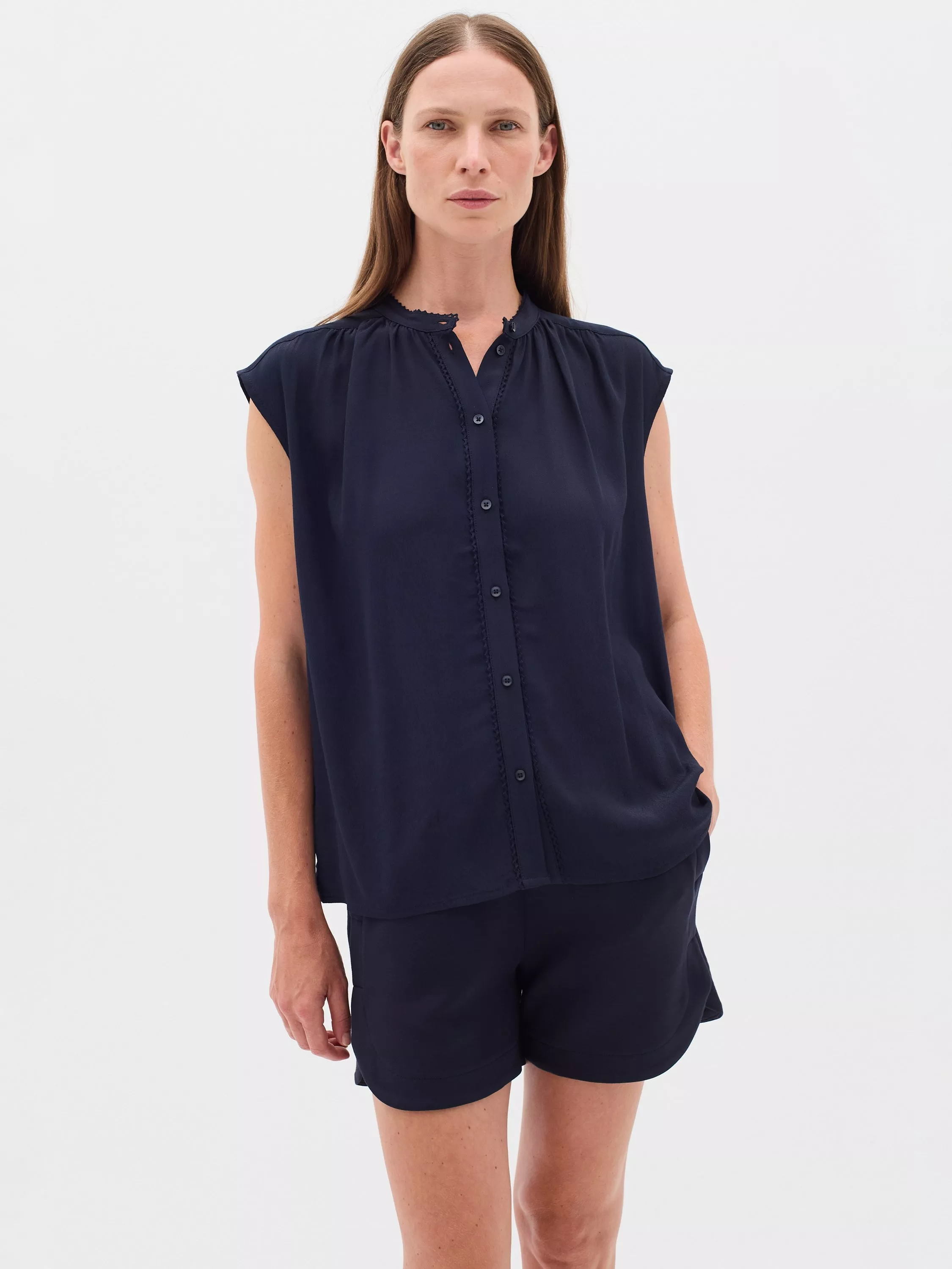 Step into timeless elegance with the Fallon top, a versatile piece. Great for any occasion, its relaxed fit, cap sleeves and button-through design elevate your wardrobe effortlessly.
