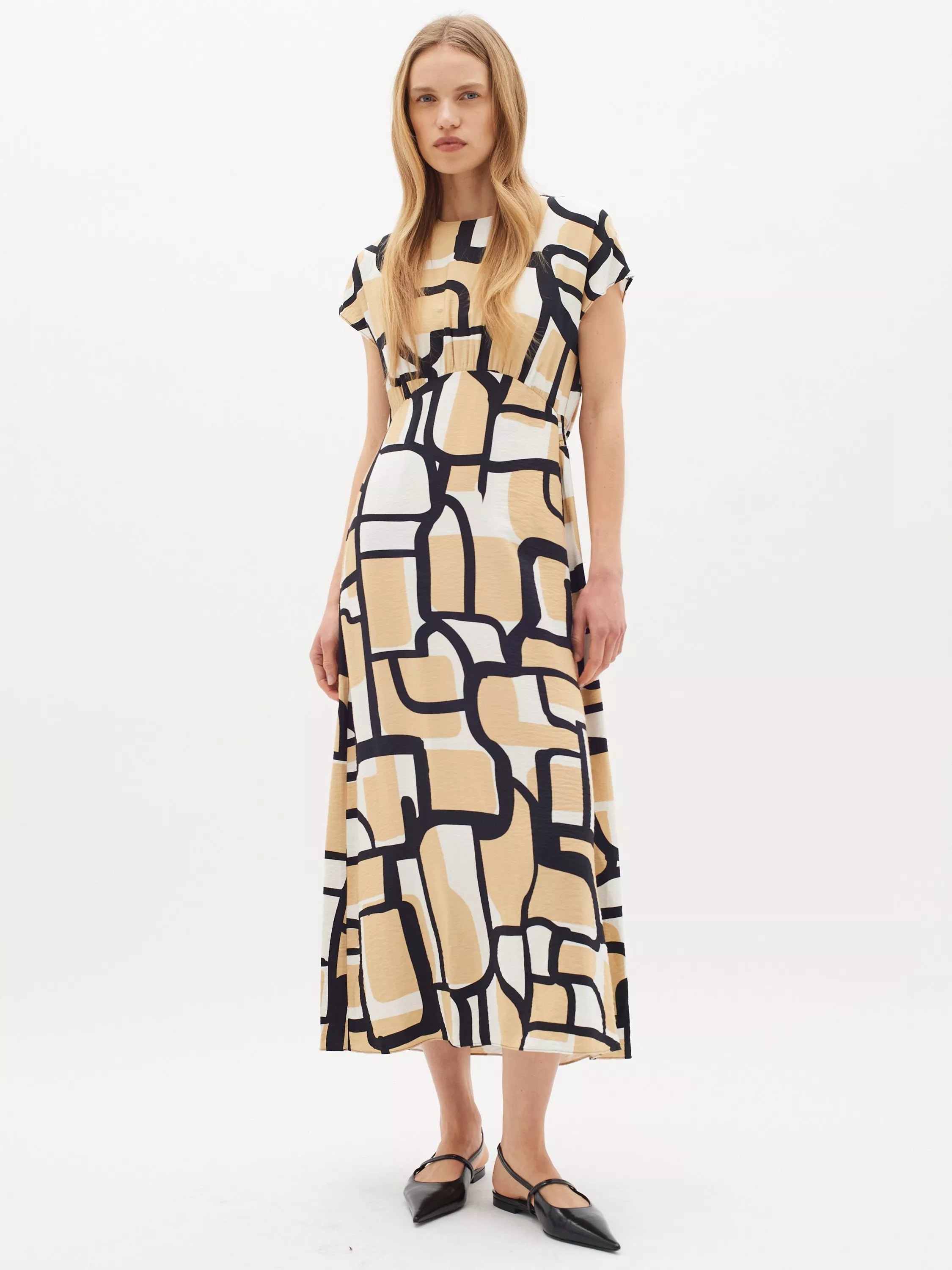 Classically cut in an A-line silhouette, this midi dress from InWear is made from a soft and easy to wear viscose blend. Rounded up with a hassle-free neck and short sleeves, it is characterised by a geometric print.