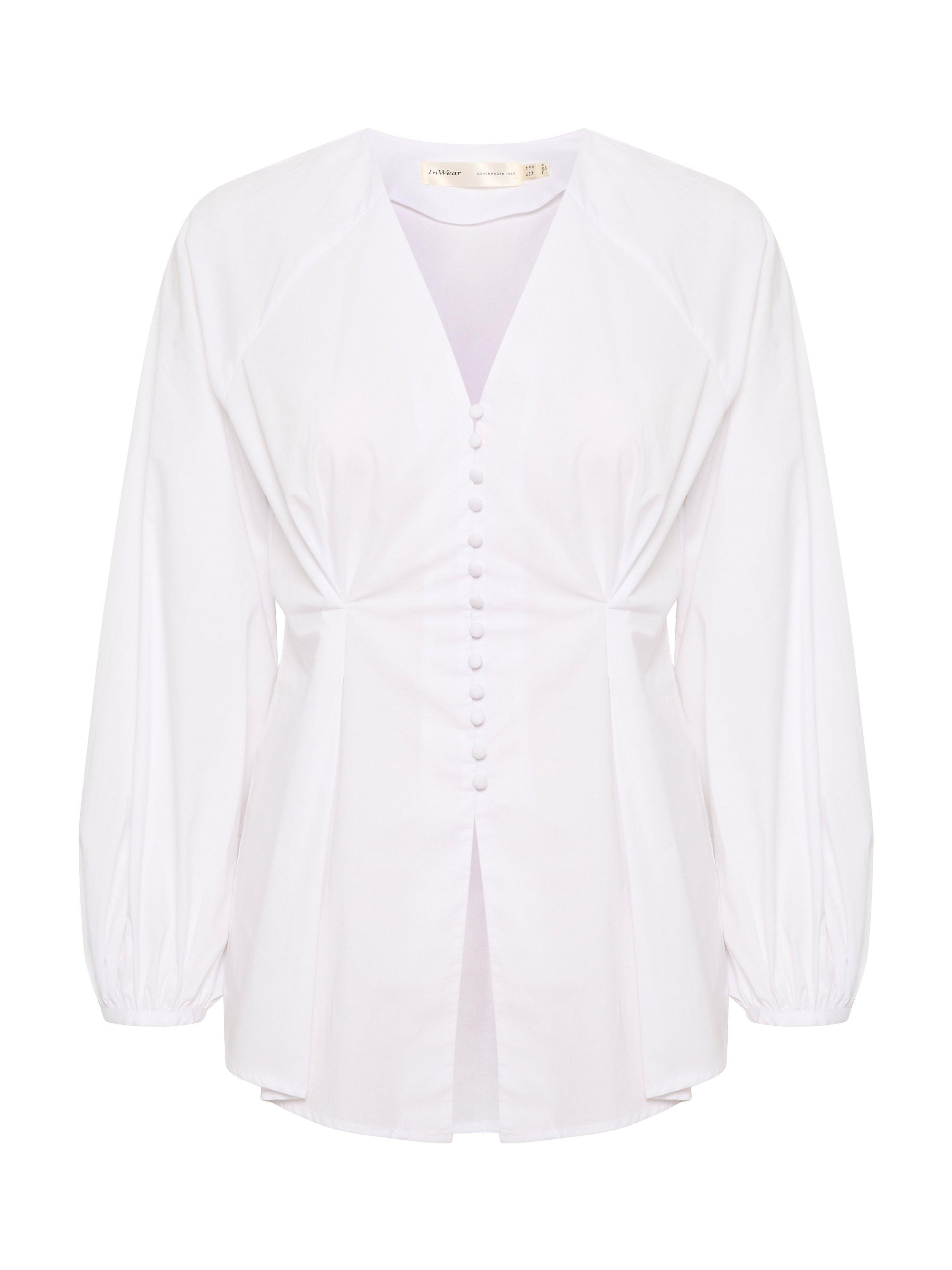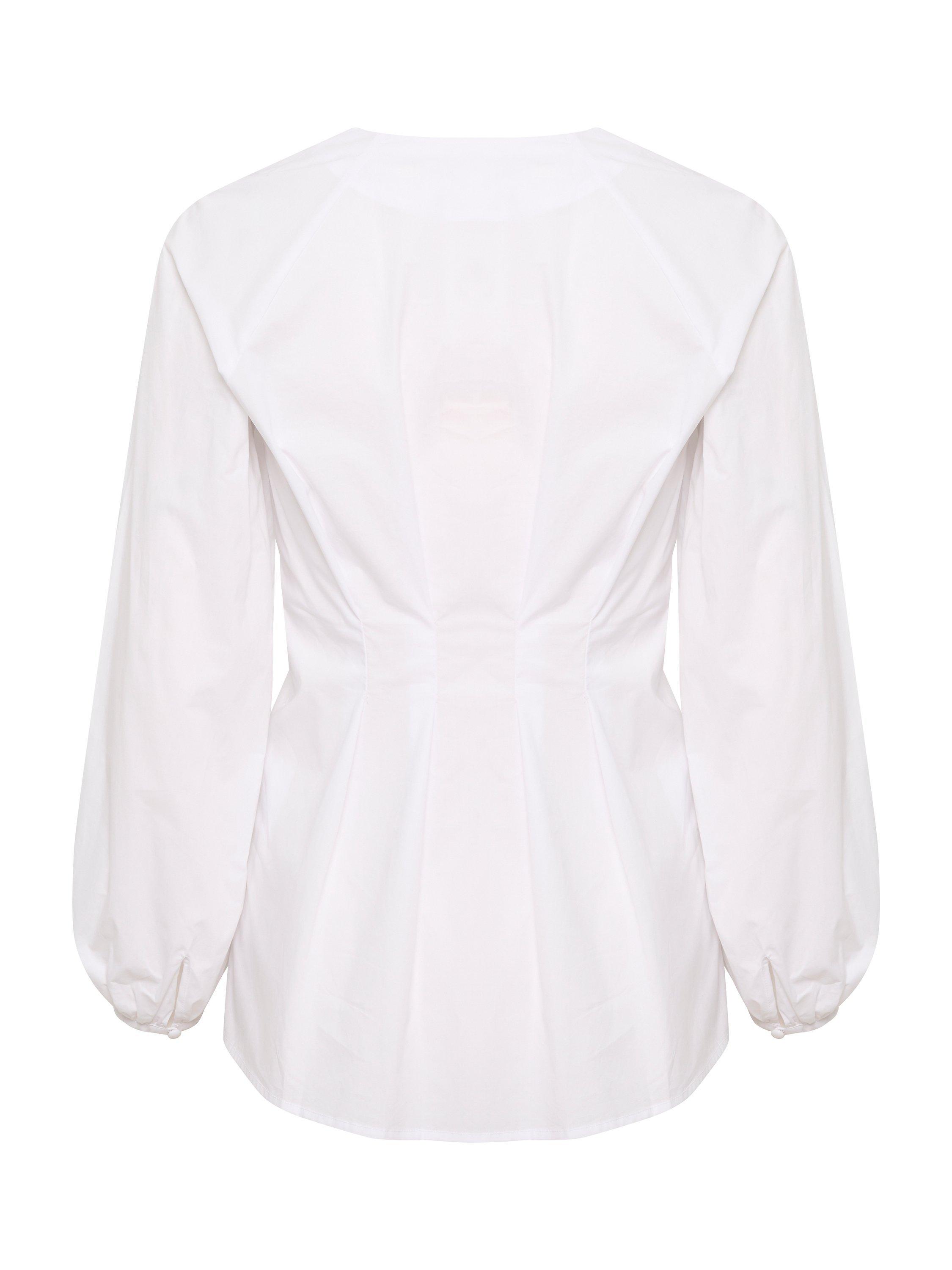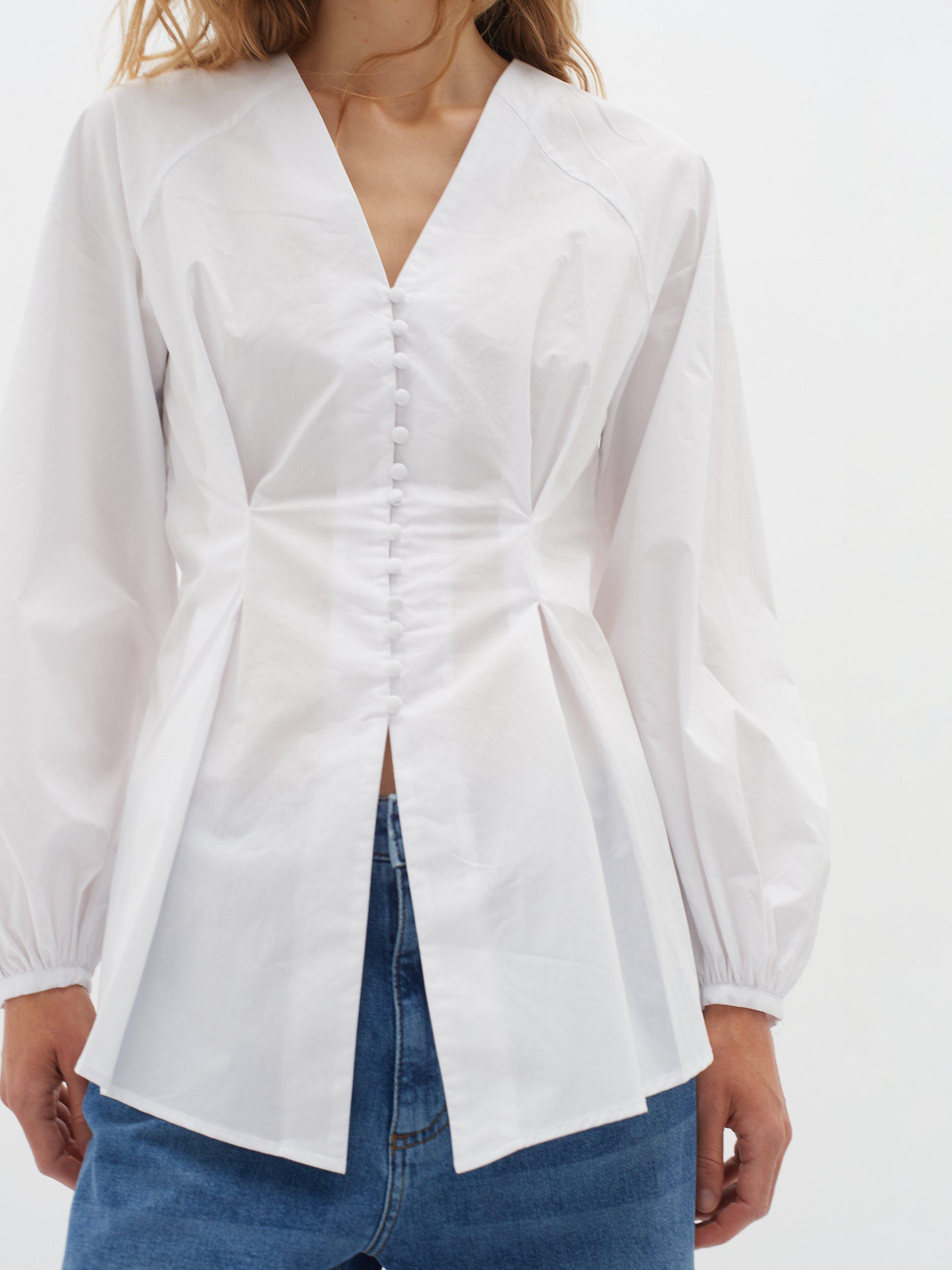 Classic in cut with a v-neckline and long sleeves, it is light and breathable in cotton and is an easy daytime option.