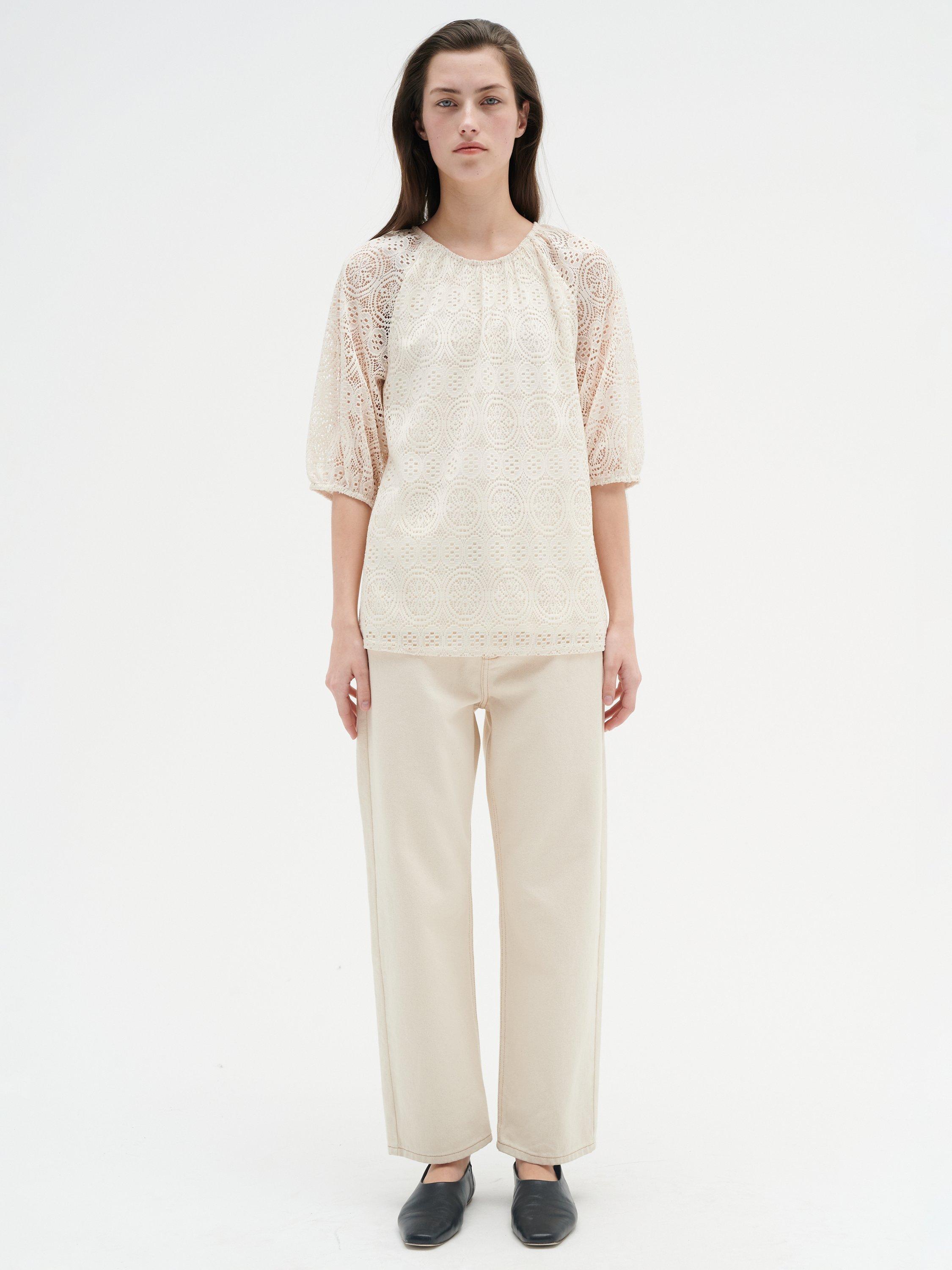 Elevate your wardrobe with the Kalara Top - a knitted, sheer look T-Shirt with short sleeves and round neck for a timeless look.