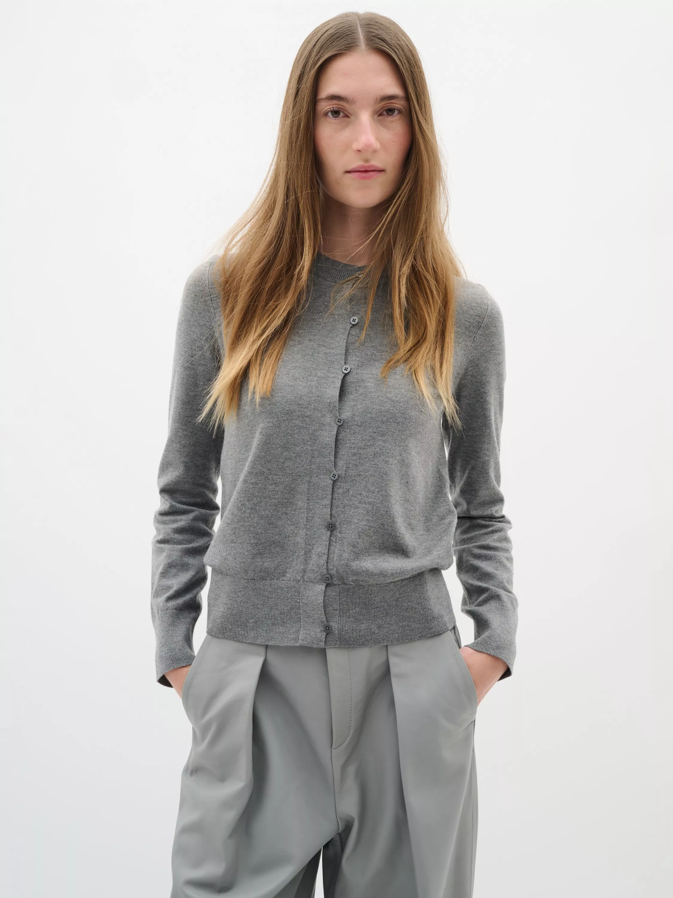 Framed with a neat crew neckline, this fine knit cardigan from InWear is made from a wool-rich blend for added warmth.