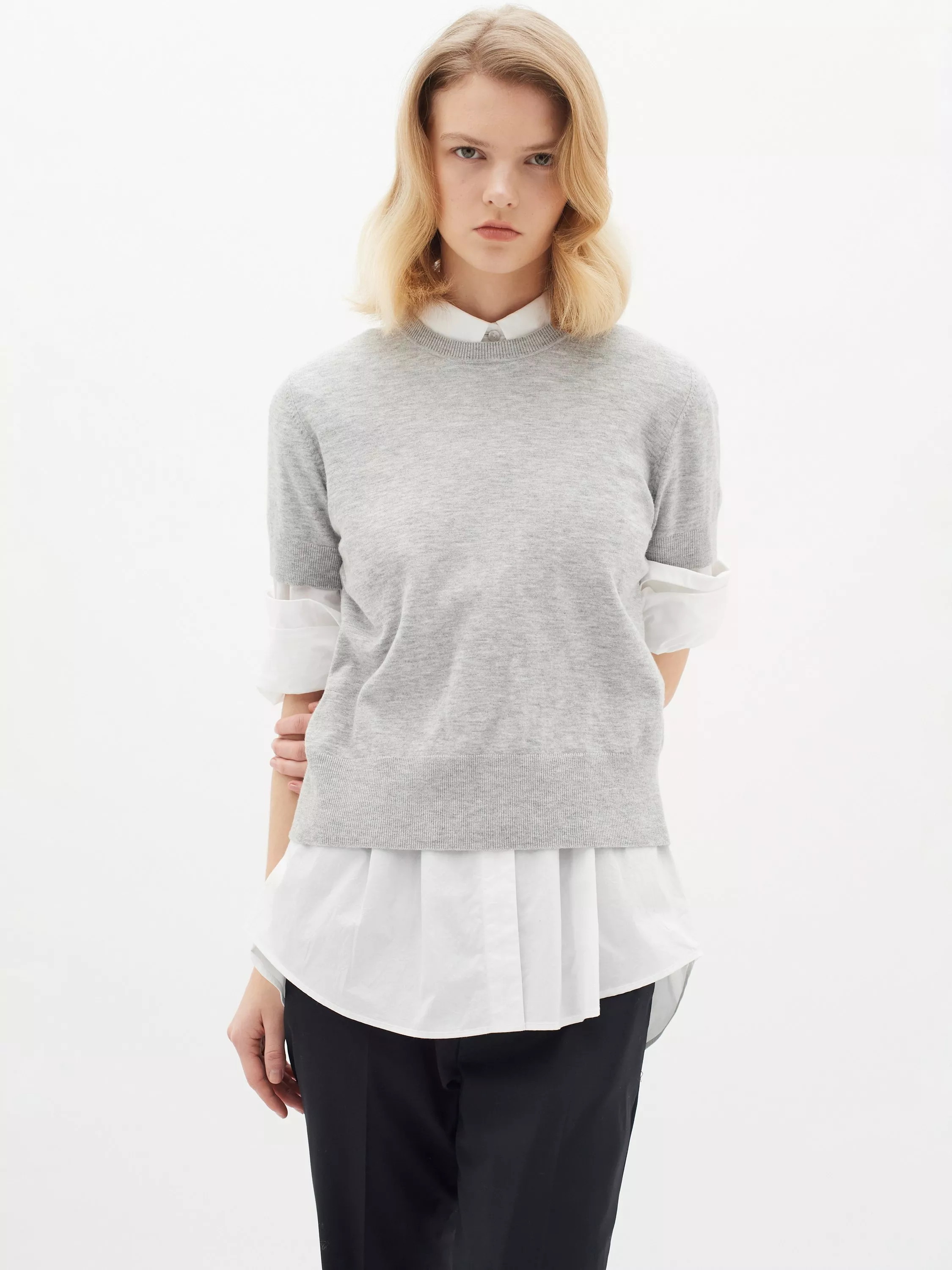 The Kellsie jumper is a great addition to this seasons wardrobe. It is made in a tight and soft knit, and it has a slim fit and a round neck. The sleeves are short and the jumper is cropped above the hips, and all the edges are finished with a narrow rib knit.