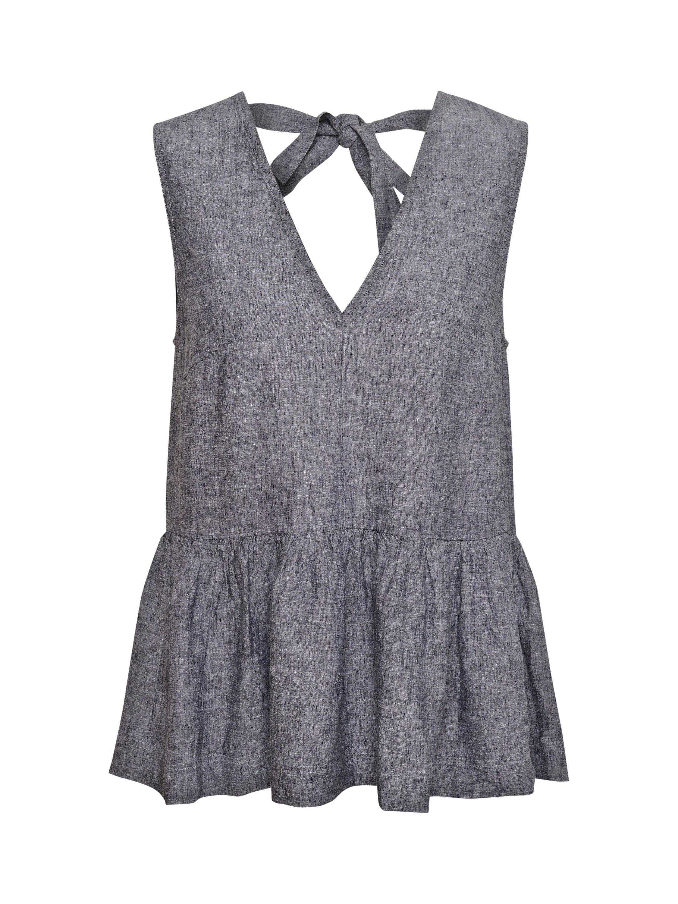 With a floaty peplum hem, this top by InWear is made from a soft linen blend with a deep v-neckline and a tie back.
