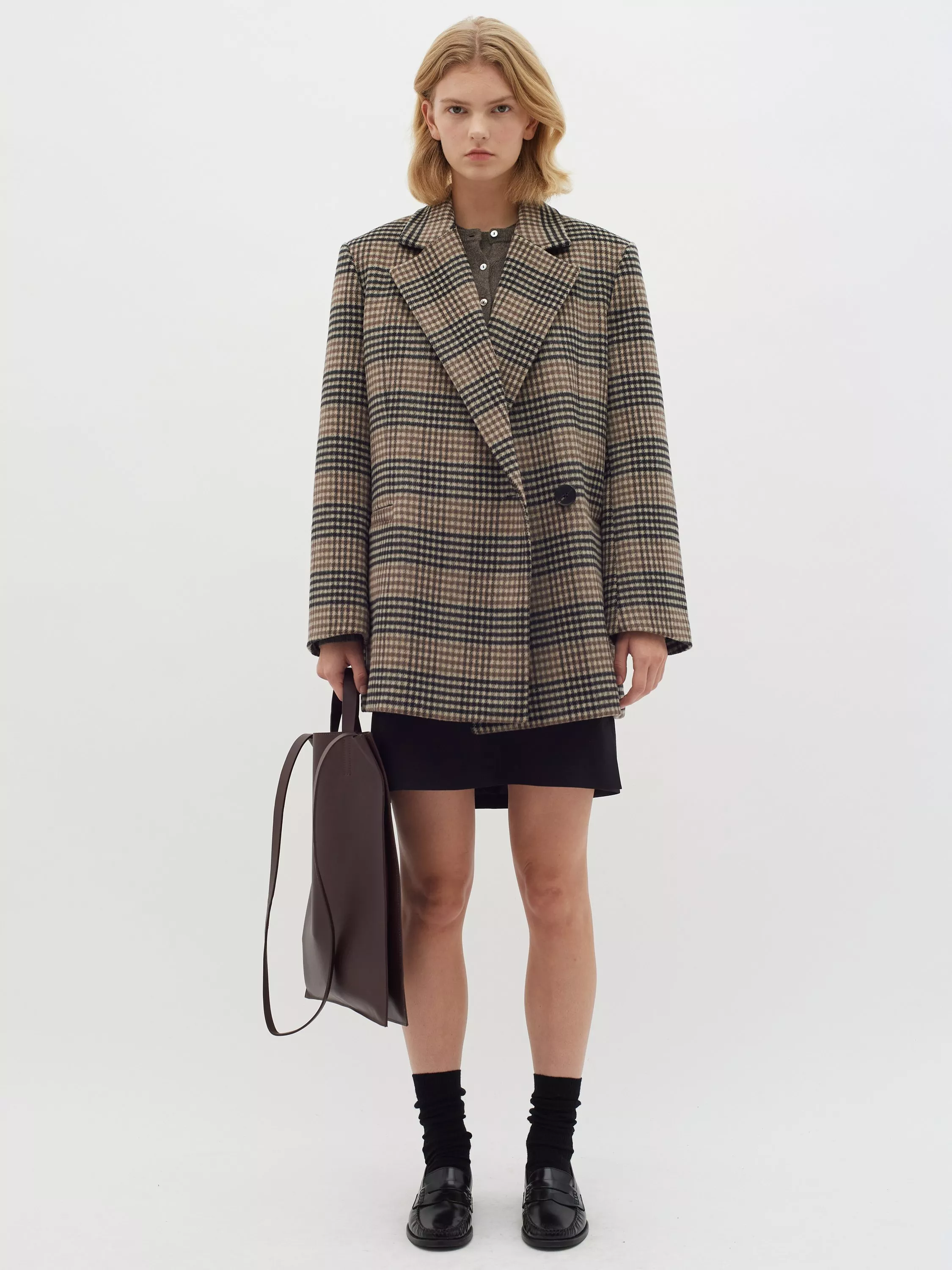 The Tawni blazer in a timeless checked pattern, blending classic style with a modern oversized fit. With a deep V-neckline and single-button closure, this blazer is perfect for adding a sophisticated touch whether layered over a shirt or a simple tee.