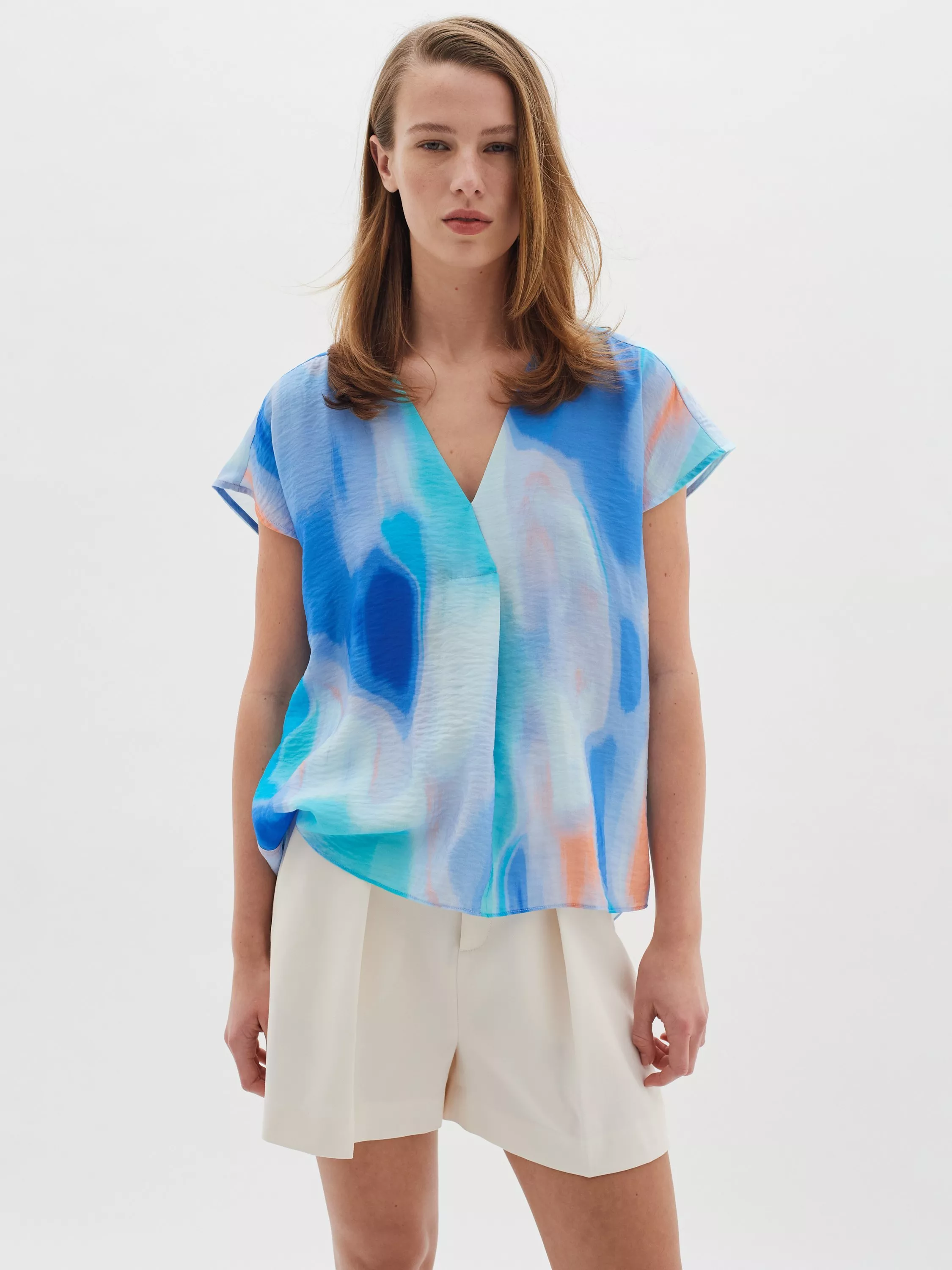 InWearTedra Abstract Print Top, Multi, Mid Blue