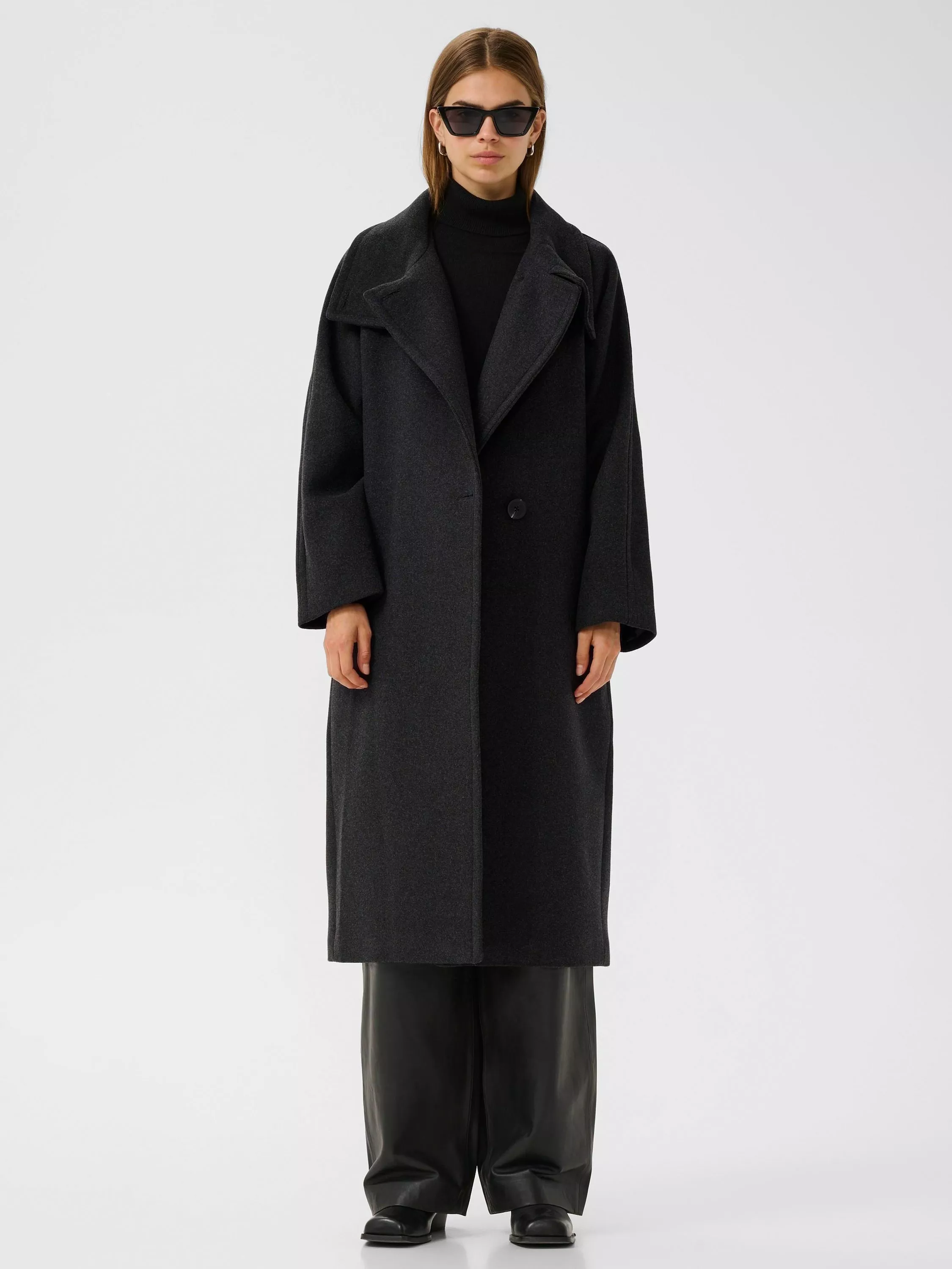 InWearThora Collar Wool Blend Coat, Dark Grey Melange
