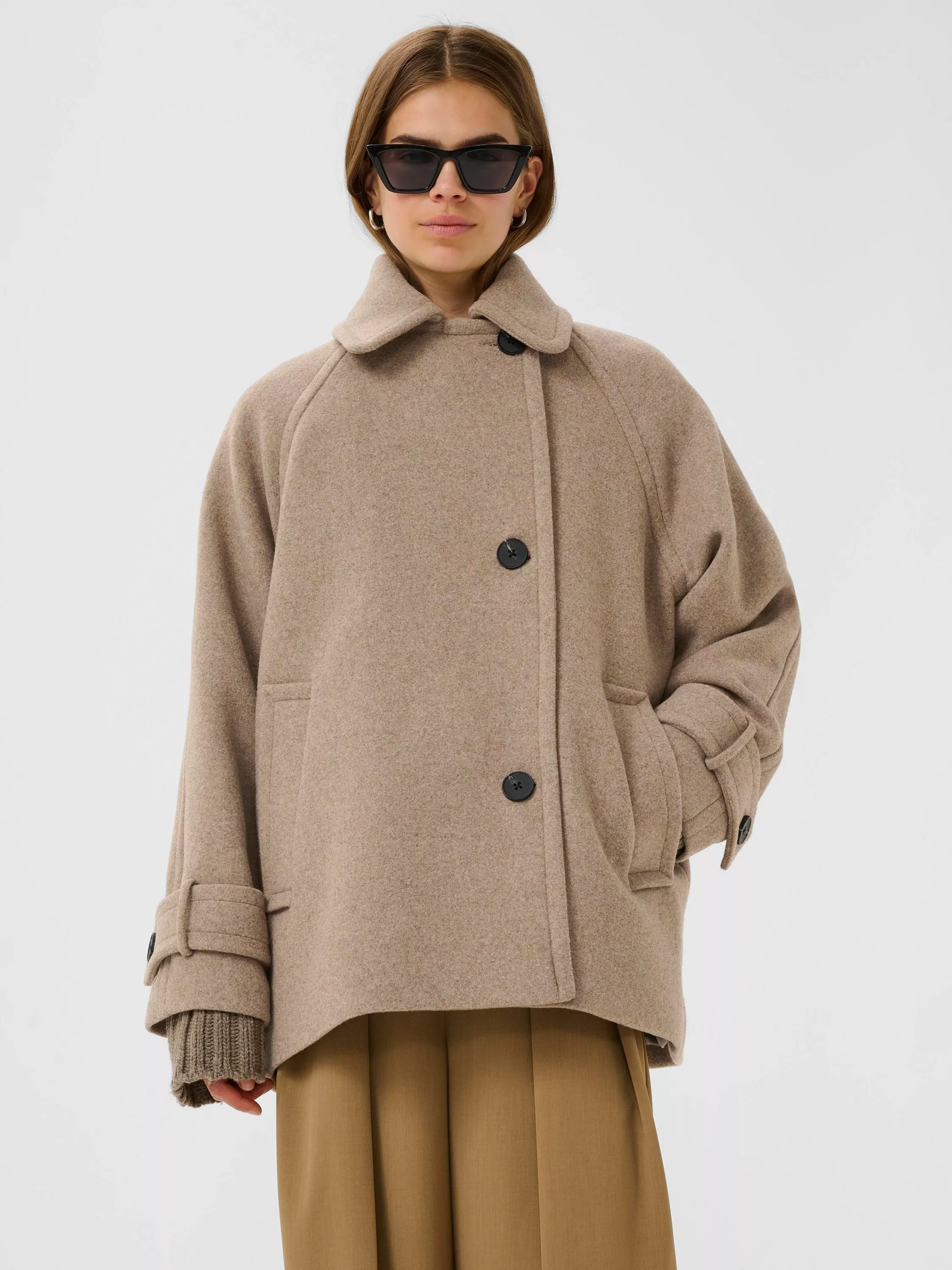 This regular-length overcoat wraps you in a wool blend, offering warmth and a sleek profile for daily wear. The plain collar, button fastening and long sleeves give you versatile styling and practical comfort in any setting.