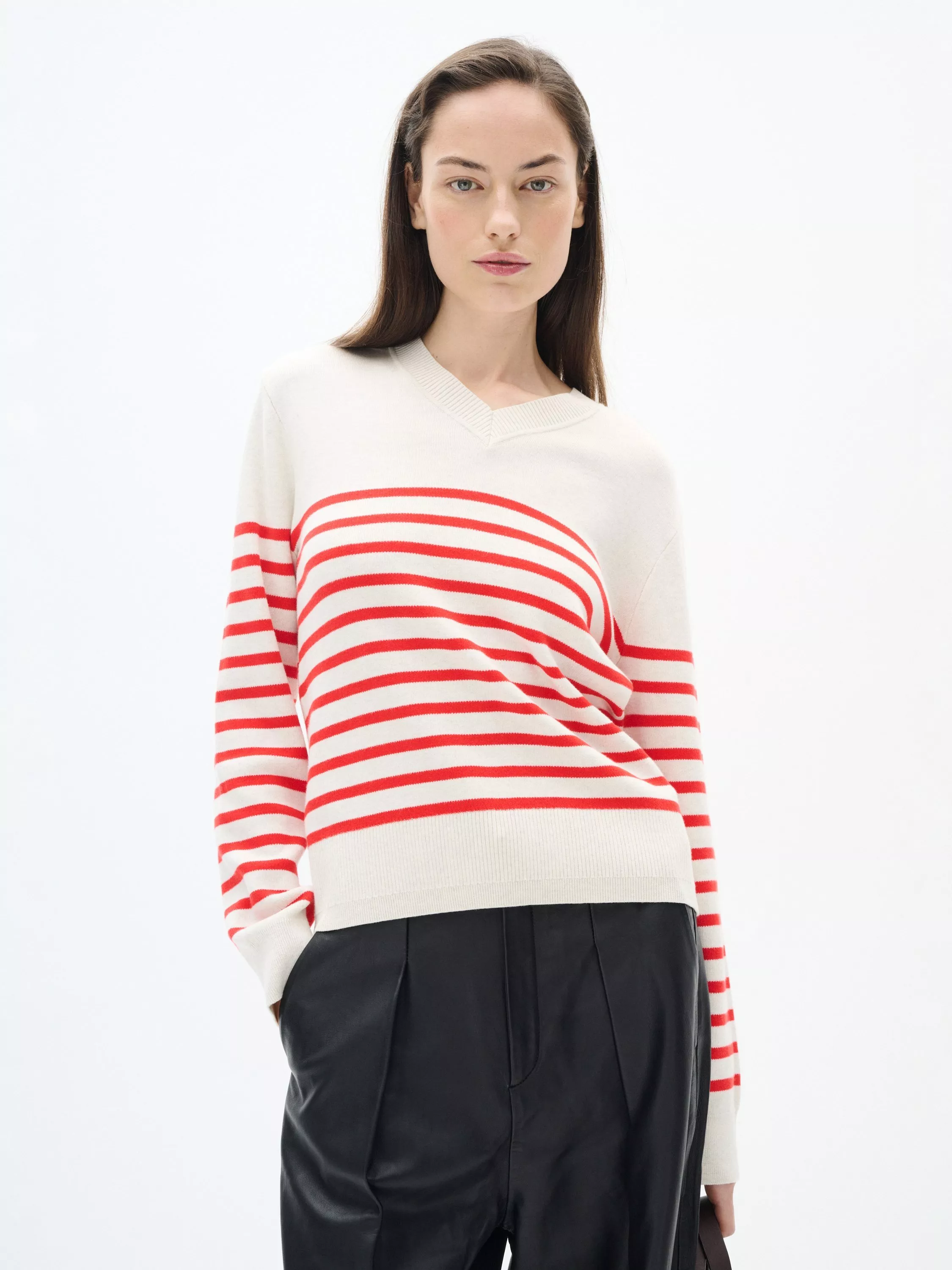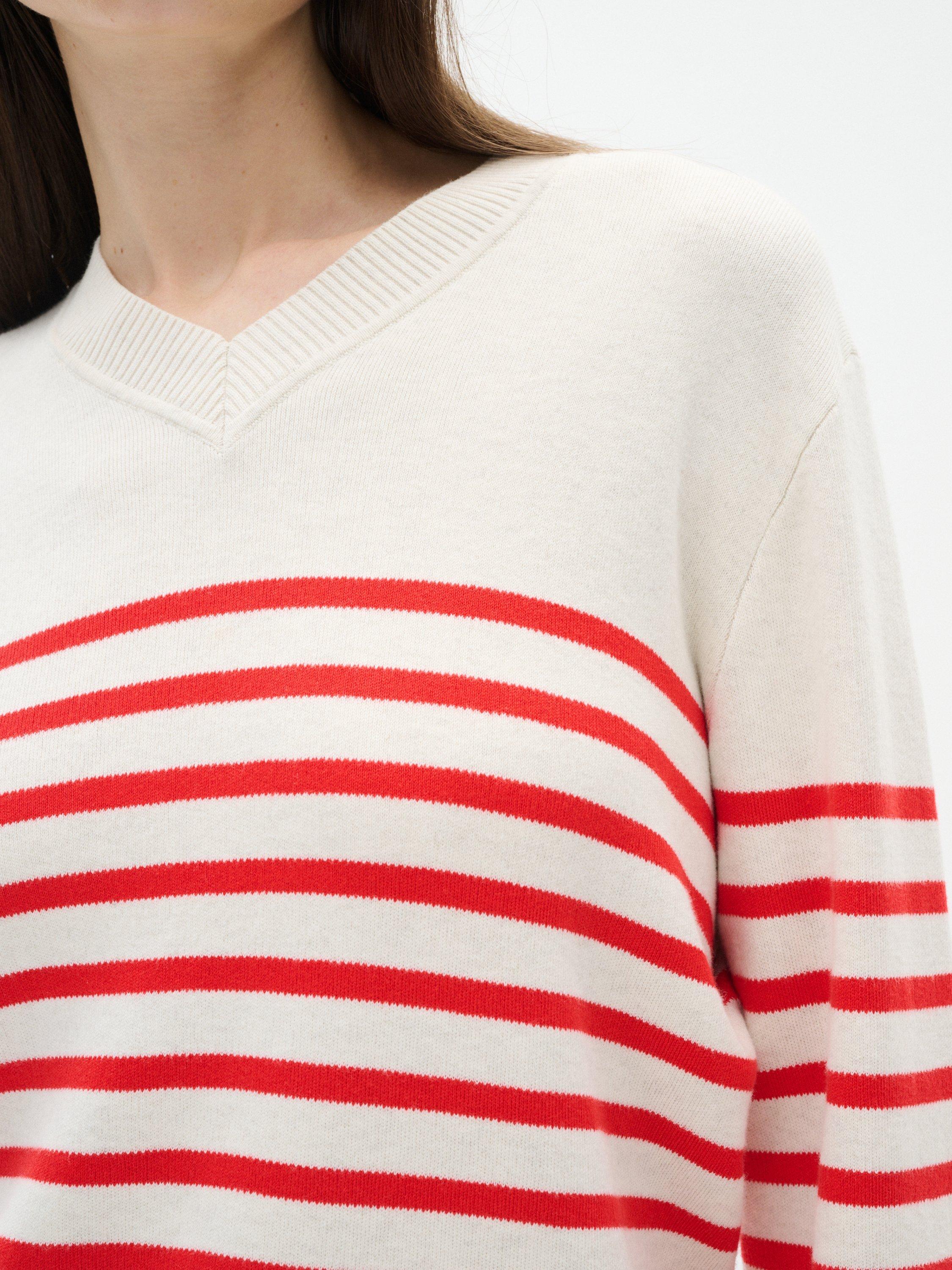 The Wallis pullover is a simple everyday style that will add a casual touch to any outfit. It has a V-neck and a regular fit, and it is made in a soft cotton knit. The sleeves are long with a tapered fit, and the pullover is cut at the hips.