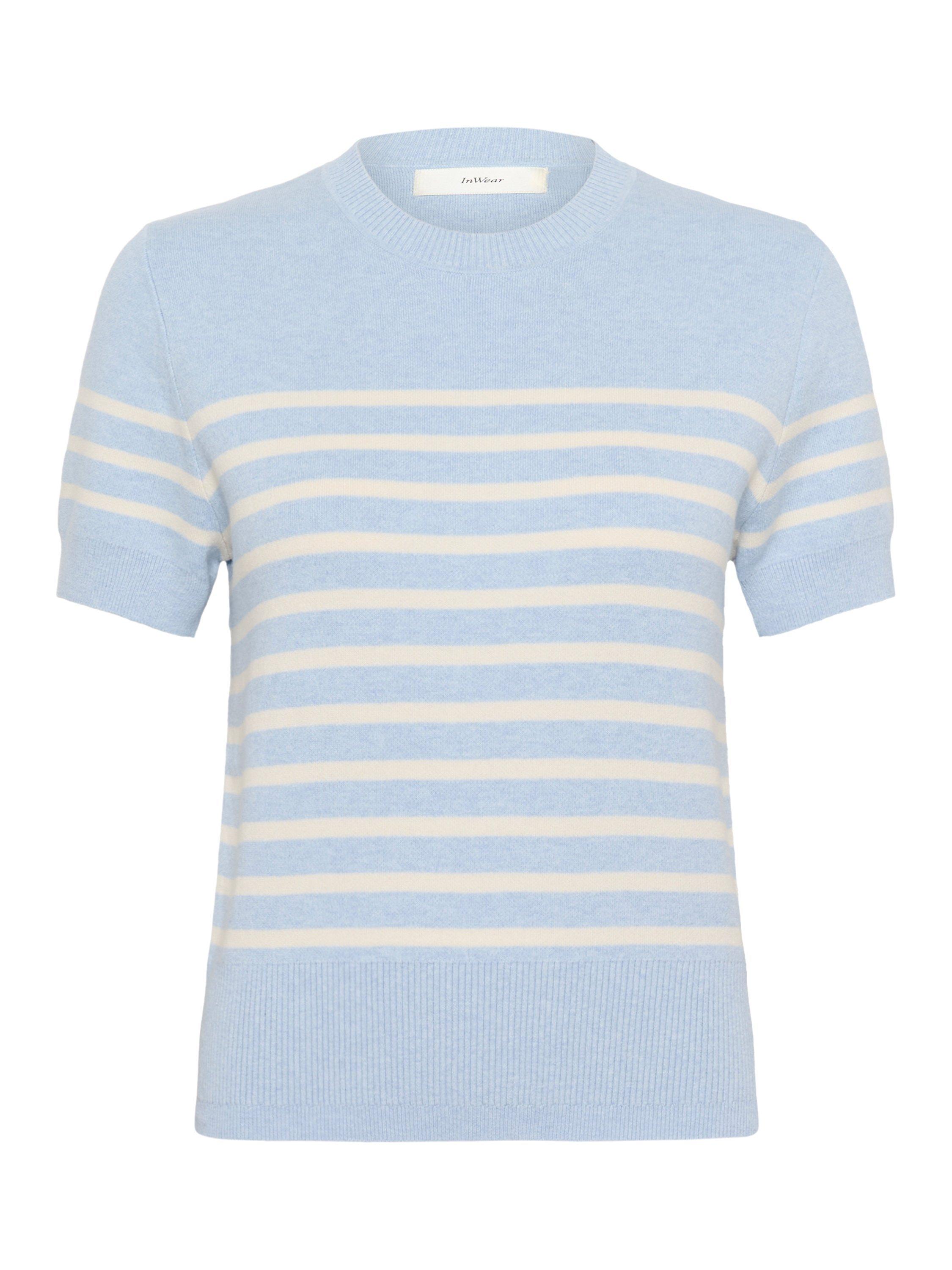 The Wallis pullover is a cute everyday style with a Parisian vibe. It has a round neck and a regular fit, and it has narrow, horizontal stripes.
