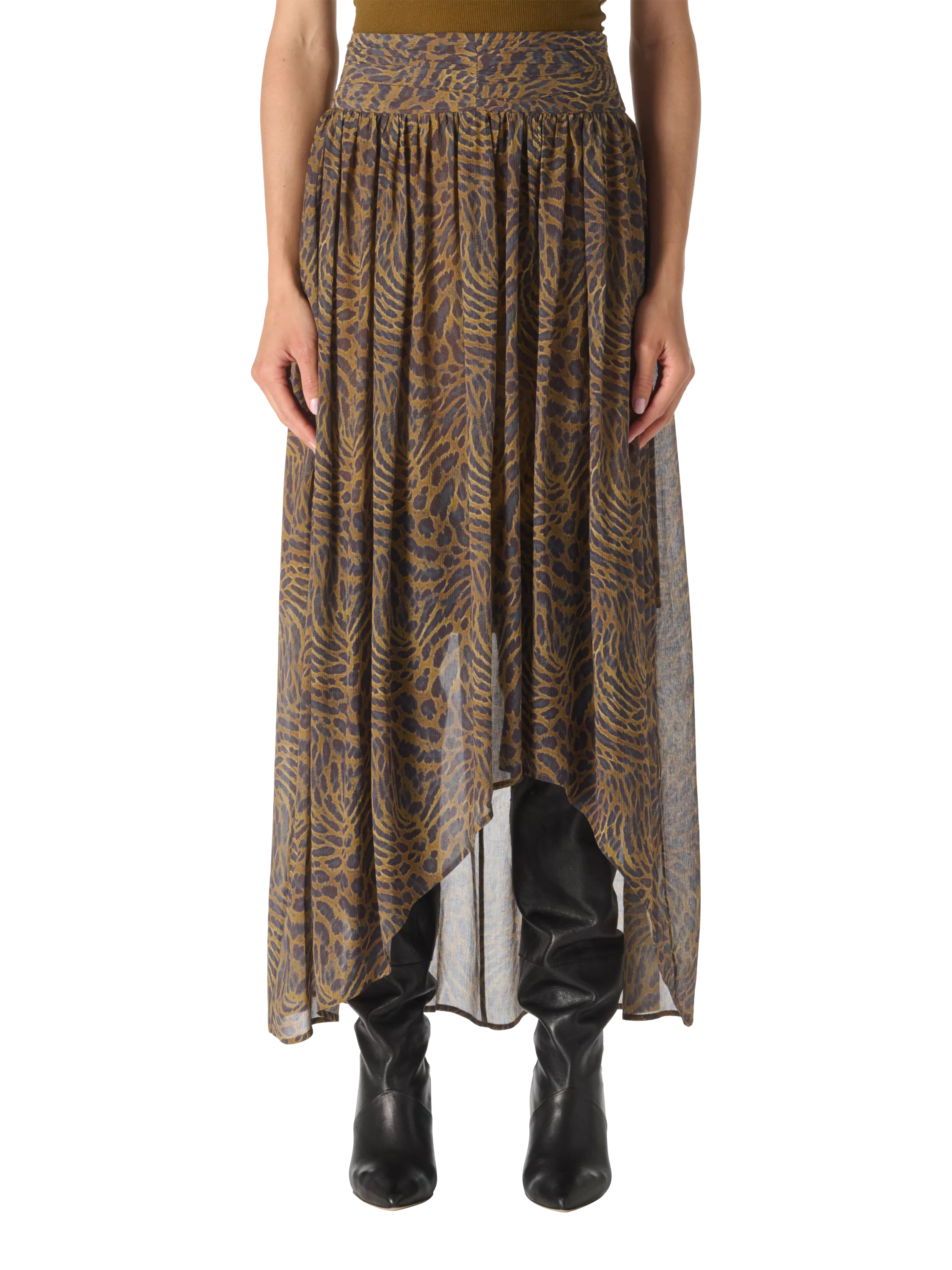A statement maxi-length skirt from IRO, made in semi-sheer viscose-silk blend. Balanced by an A-line with a high-low hem, it's equipped with a zip closure.