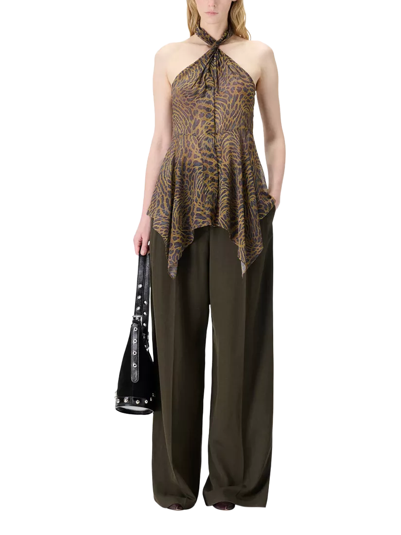 A twist halterneck animal-print top from IRO, adding instant character to your wardrobe. Made from a fluid silk-blend fabric, its finished with a hanky hem.