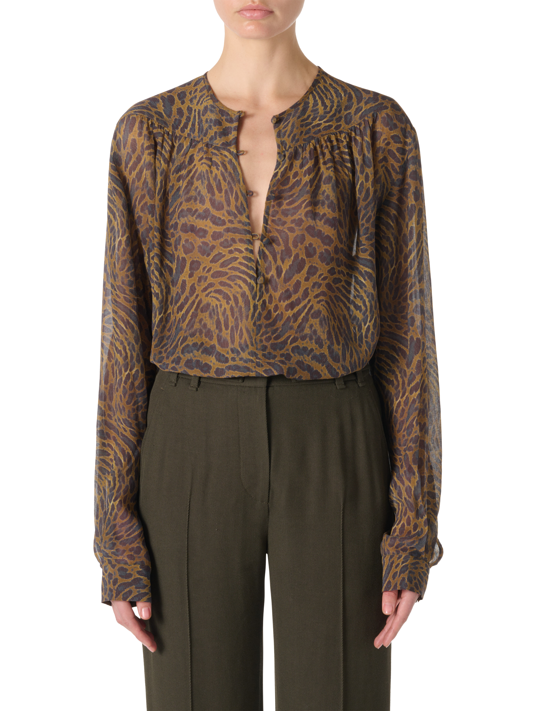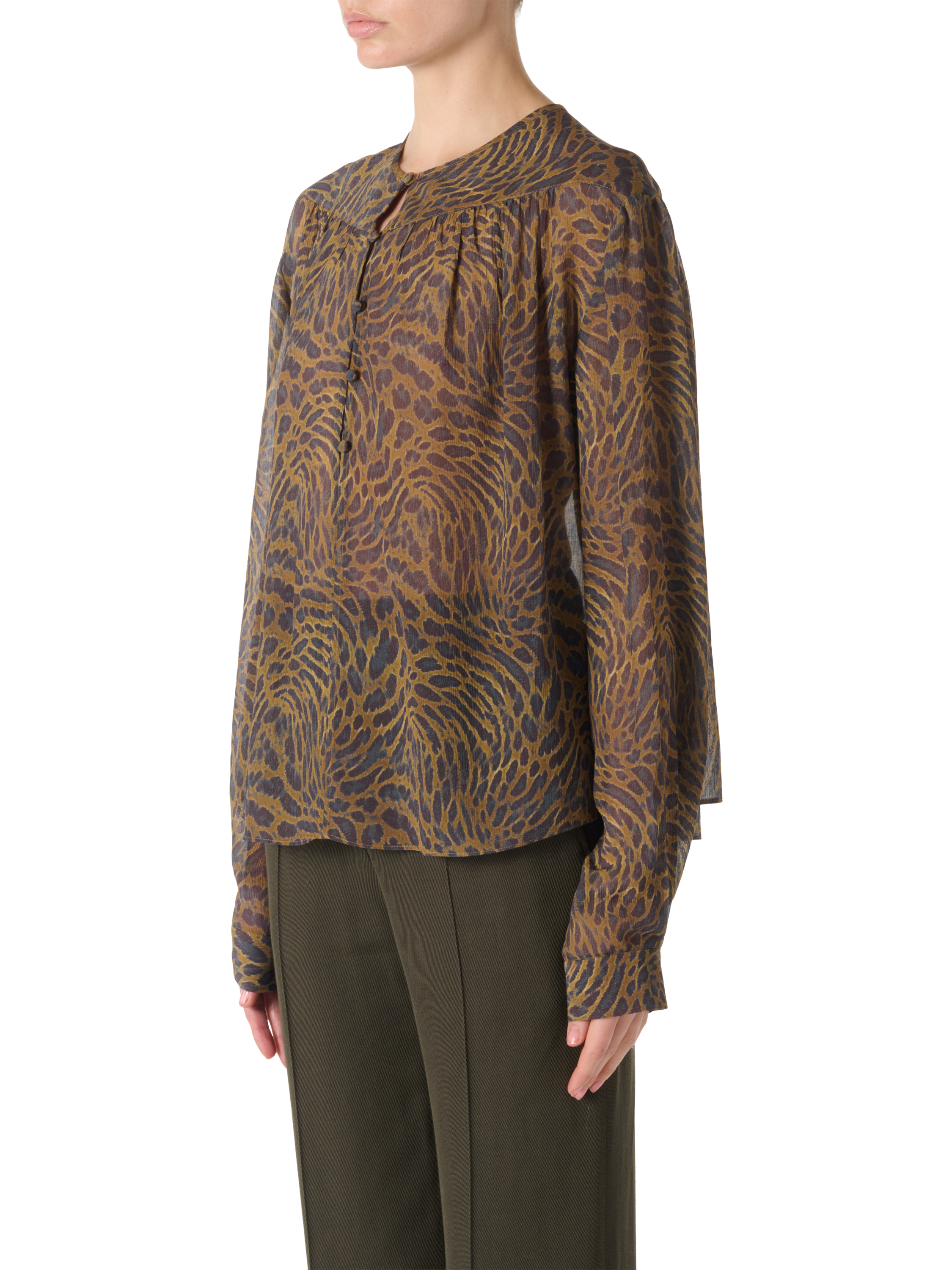 Take centre stage in this animal-patterned blouse from IRO. The longline cut and soft silk blend make it ideal for both day and party wear.