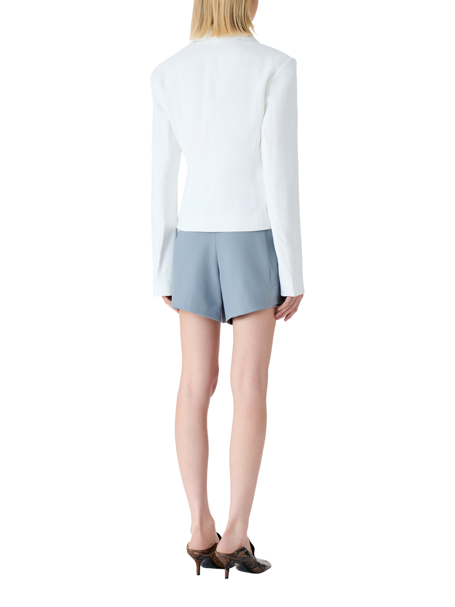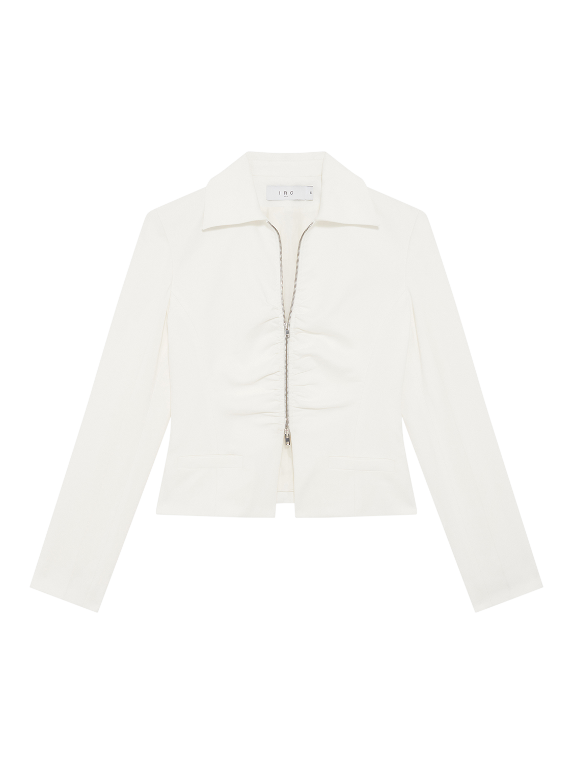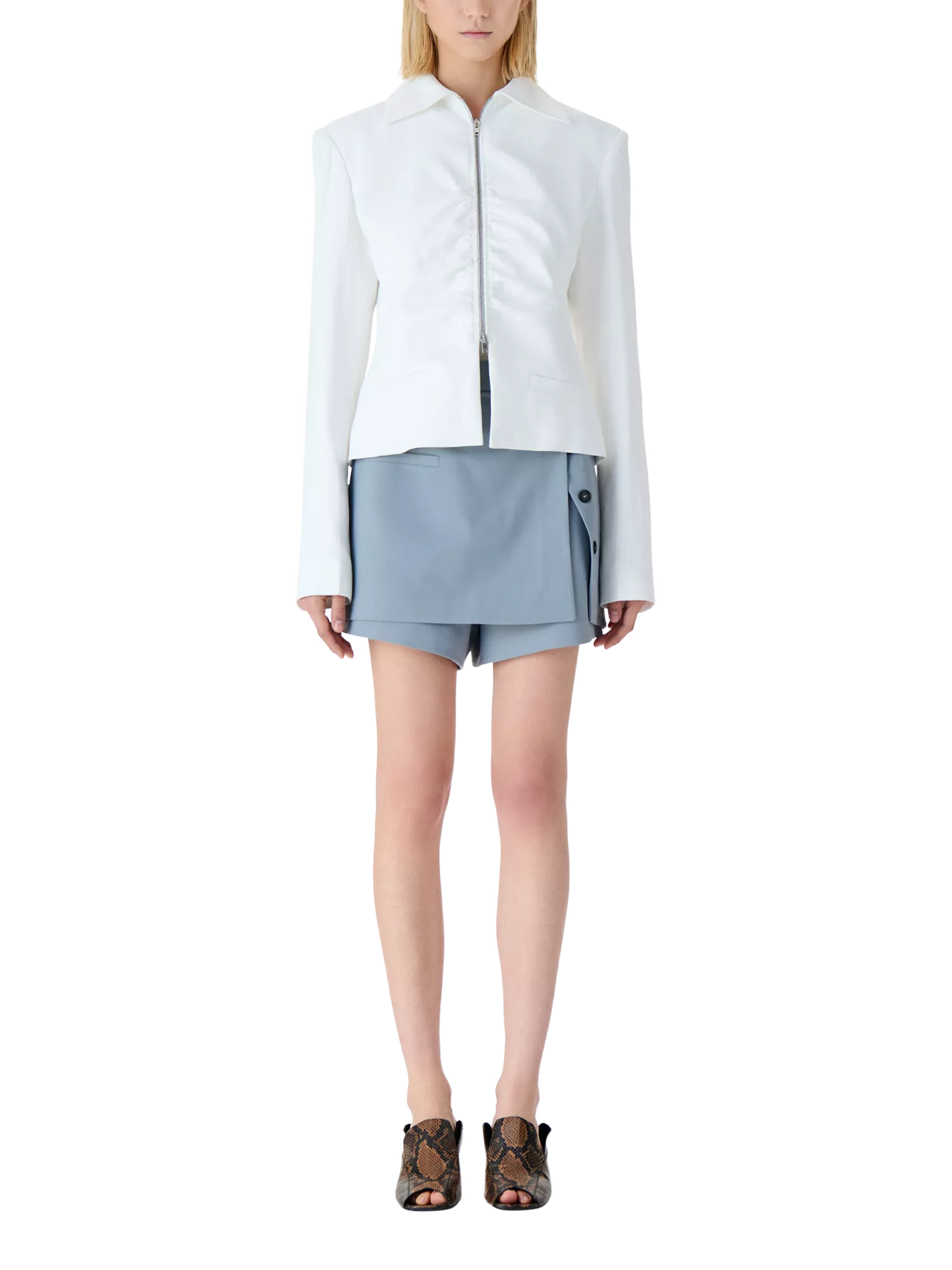 This tailored jacket offers a clever collar neck, ruched front with a zip fastening, giving you versatile style for any day. Its cropped cut pairs effortlessly with your favourite looks.