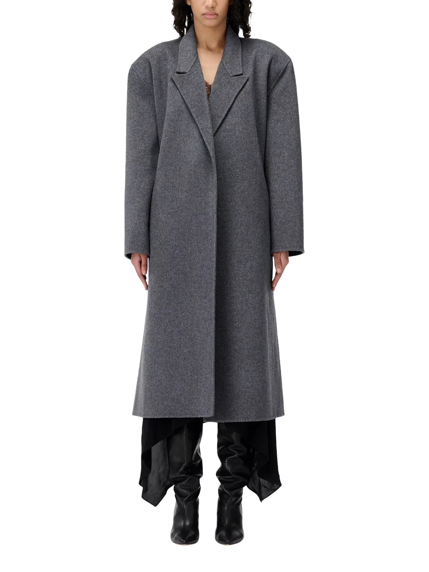 An IRO belted mid-length overcoat. Crafted from a wool blend, its regular fit and V-neck design offer comfort and style, keeping you at ease during winter days and beyond.