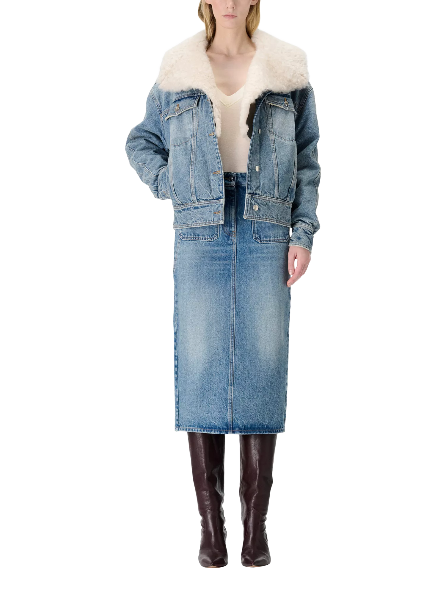 A denim midi skirt by IRO with endless wardrobe versatility. Carved to a comfortable A-line, it’s crafted from cotton with a classic button and zip fly fastening.