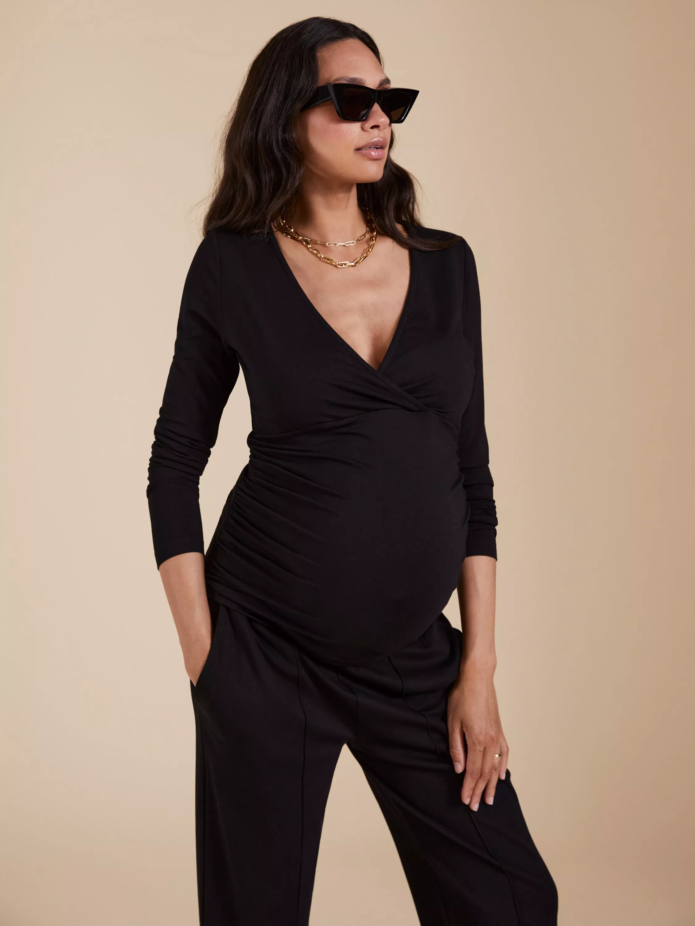 The Georgia Maternity Top is a versatile staple which can be effortlessly dressed up or down. Crafted in soft and stretchy jersey, it keeps it shape and colour wash after wash. Georgia features a flattering deep v-neck and a chic wrap detail. Below the under-bust seam is a panel of ruching to accommodate a growing bump, offering comfort and style through pregnancy - and beyond.