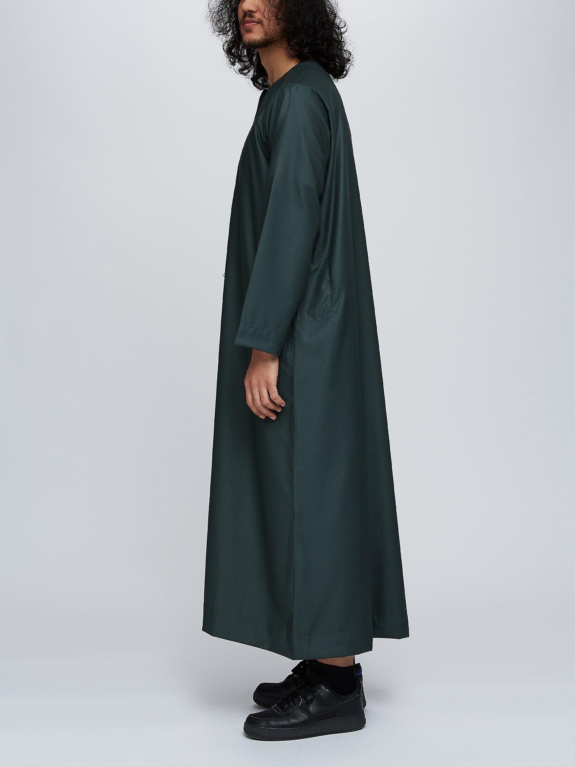 The Islamic Impressions full-length robe is commonly known as a thobe or jubbah depending on the region in the Middle East. The Omani Thobe has a round collar often worn in the Emirates or Oman. Worn at faith events, social gatherings or as loungewear, this lightweight piece is unlined for optimum breathability.