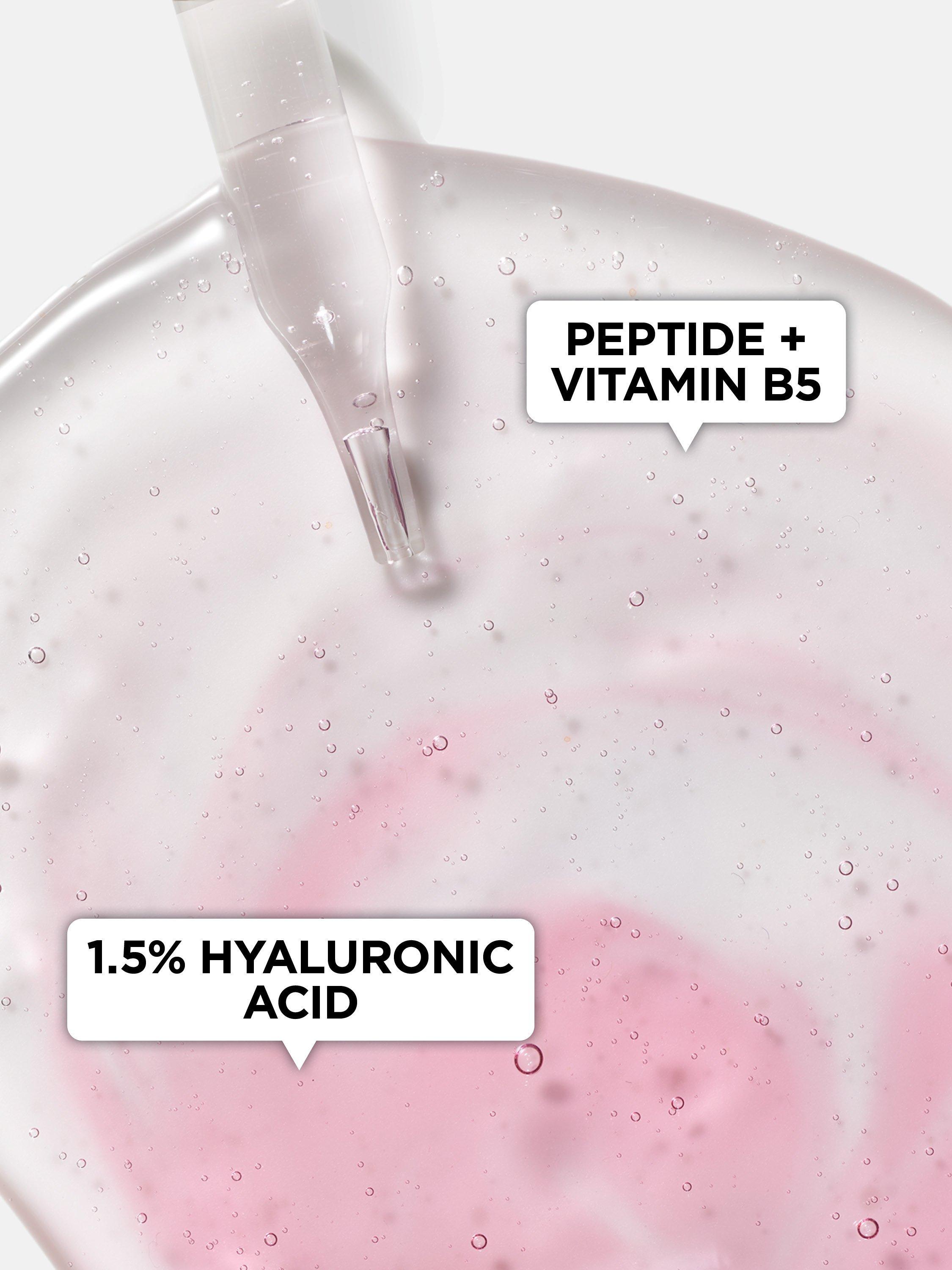 - Formulated with 1.5% hyaluronic acid, plus peptide + vitamin B5