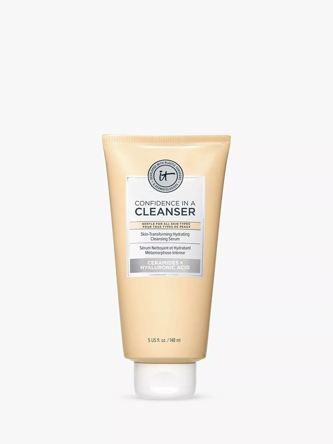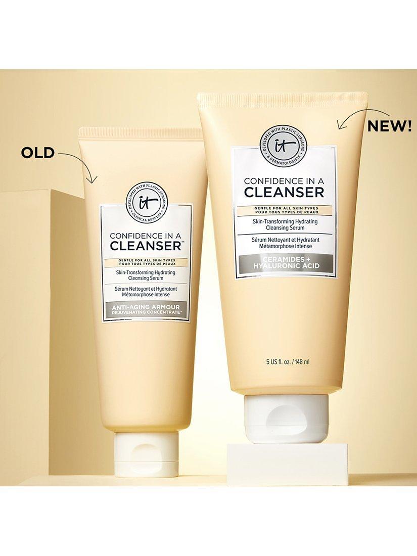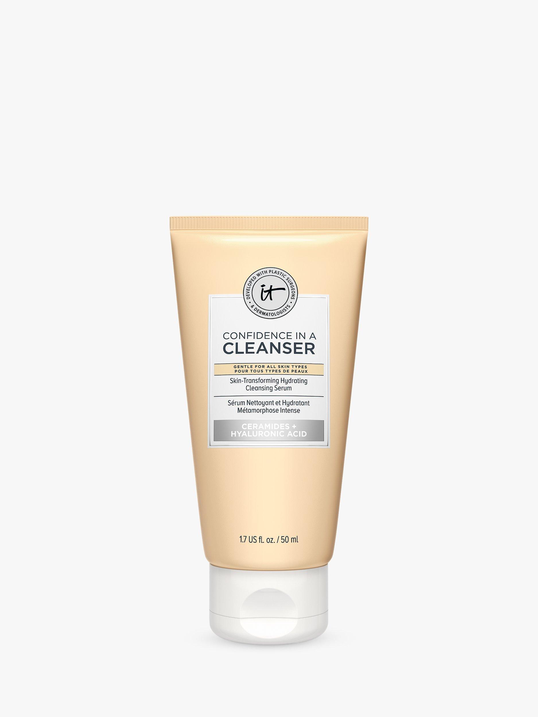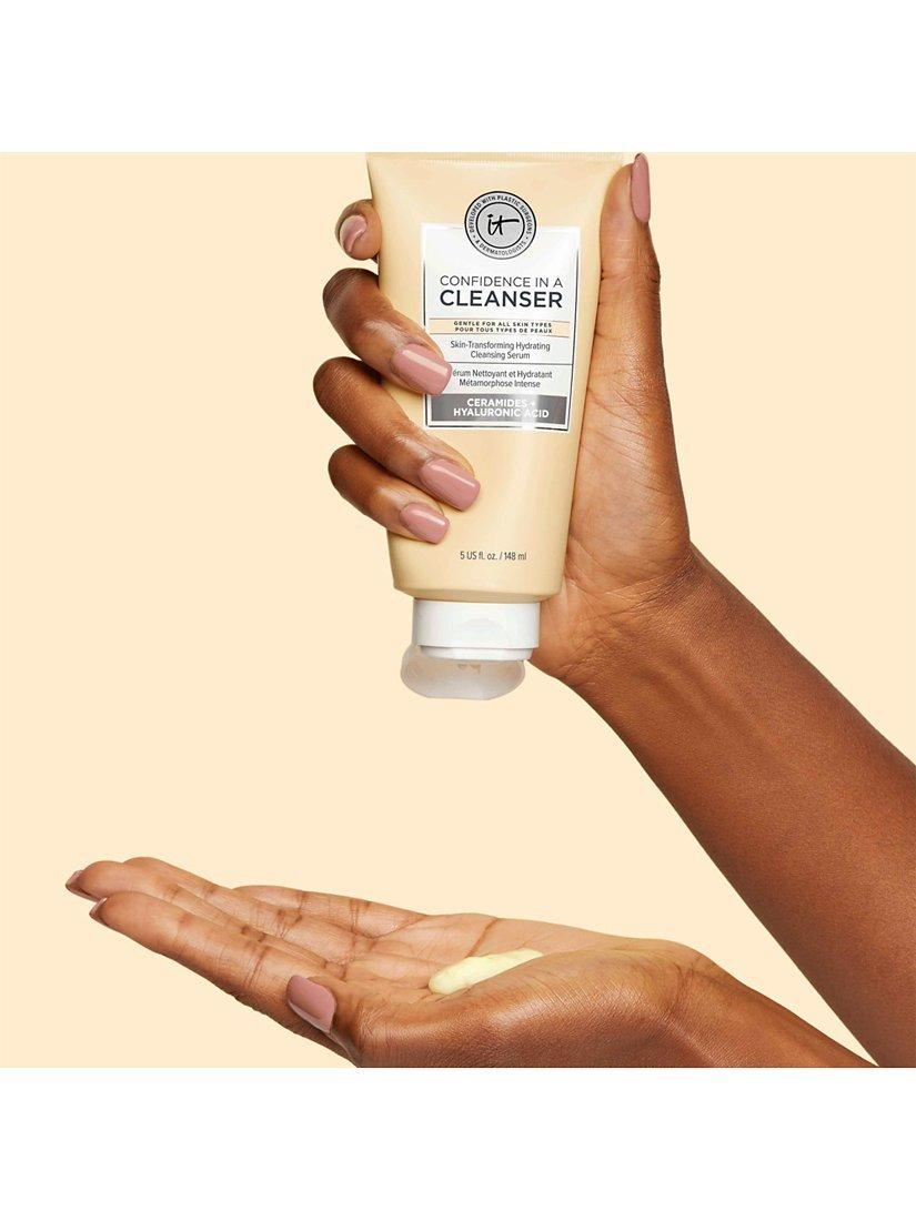Discover IT® Developed with plastic surgeons and dermatologists, Confidence in a Cleanser Hydrating Facial Cleanser Serum is your skin-loving cleanser that combines the cleansing power of a foam cleanser with the hydration of a serum! It gently removes makeup, oil, SPF and traces of pollution while supporting your skin barrier. Gentle enough for twice-daily use without drying or stripping your skin, it delivers immediate and lasting hydration, making it the perfect facial cleanser for even the most sensitive skin types.