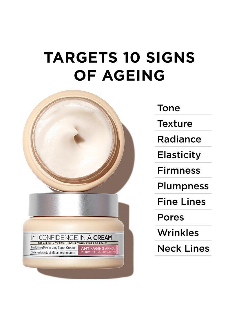Discover IT® The #1 anti-ageing cream in America* is now supercharged! Confidence in a Cream Anti-Ageing Hydrating Moisturiser is optimised to deliver the appearance of improved skin firmness and help to reduce 10 signs of ageing.