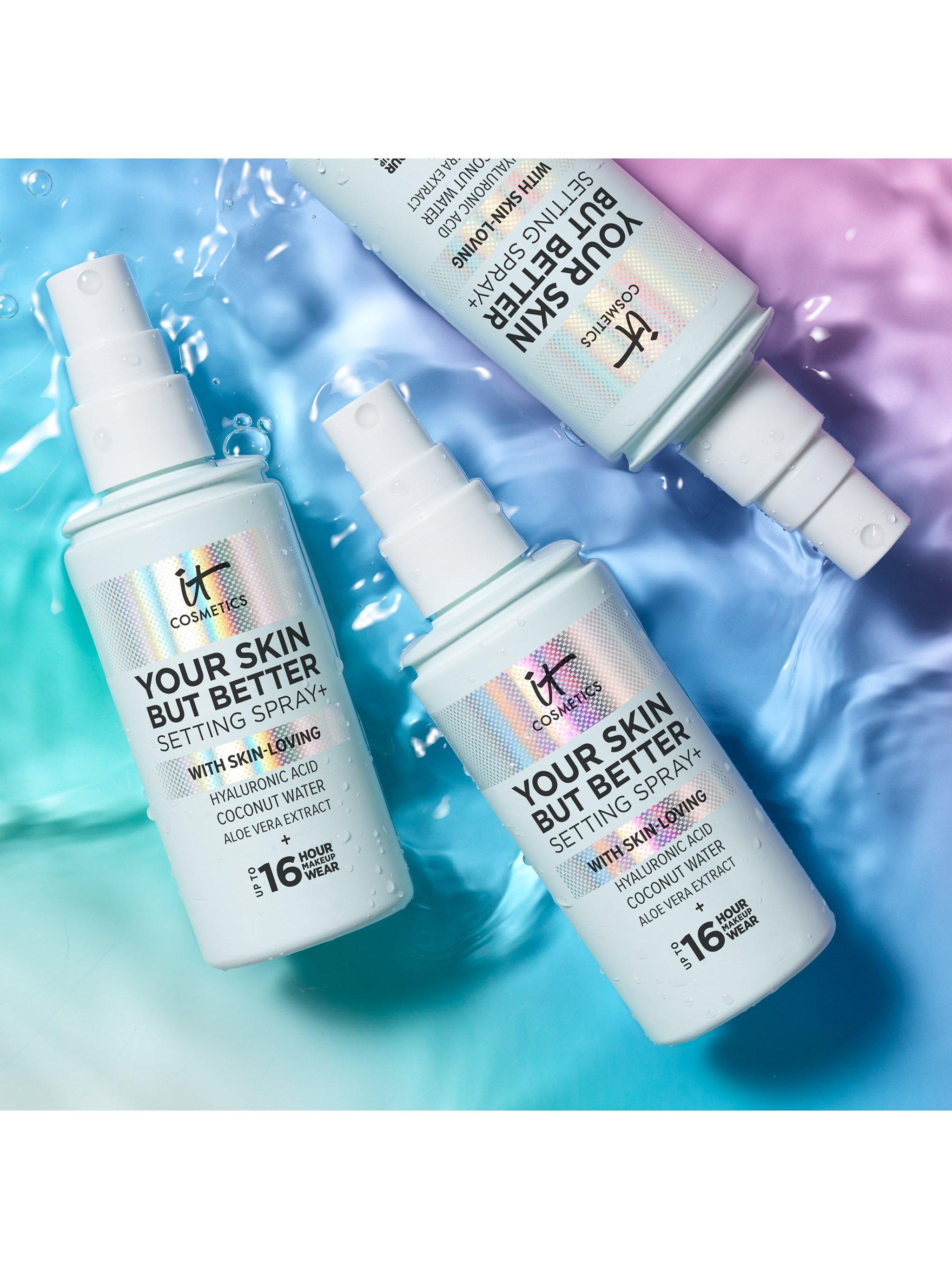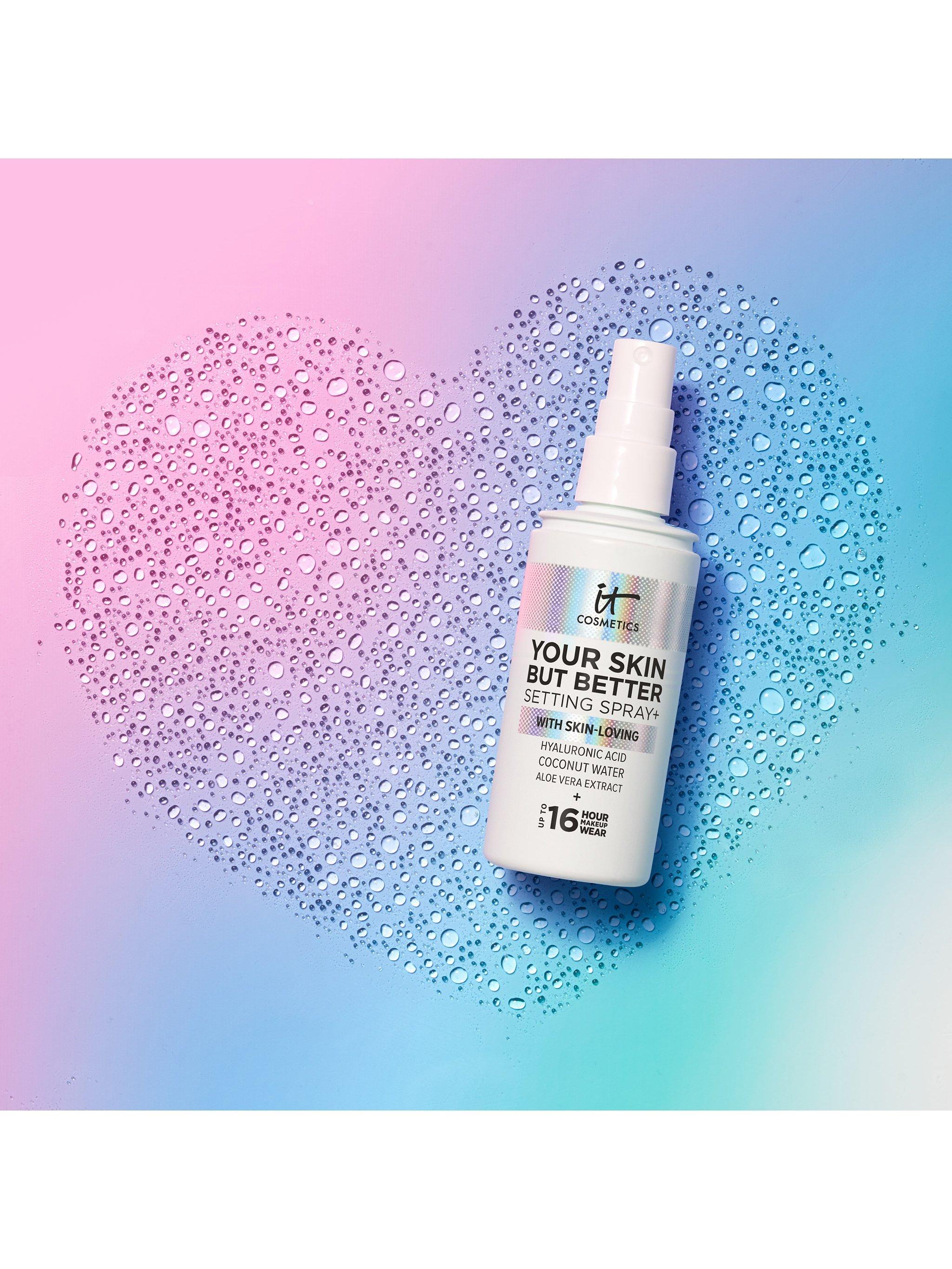 Suitable for all skin types and infused with hyaluronic acid, coconut water, and aloe vera extract, Your Skin But Better Setting Spray+ can also be used to replenish your skin throughout the day. IT's your makeup setting spray that also cares for your skin.