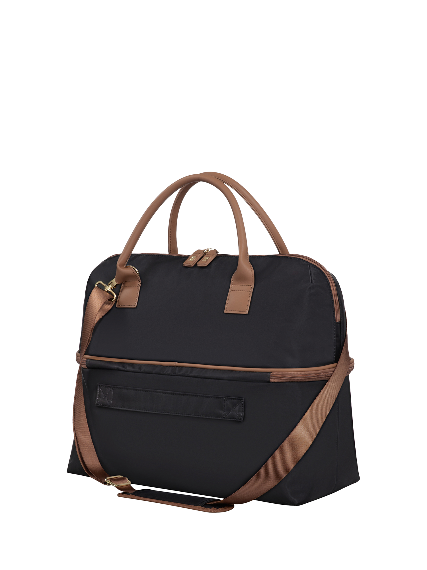 The holdall can also be mounted on any suitcase using the rear strap. With dual carry handles, a detachable shoulder strap, and a wide-opening top zip compartment, this bag is ready to keep you organised and effortlessly stylish while you travel in luxury.