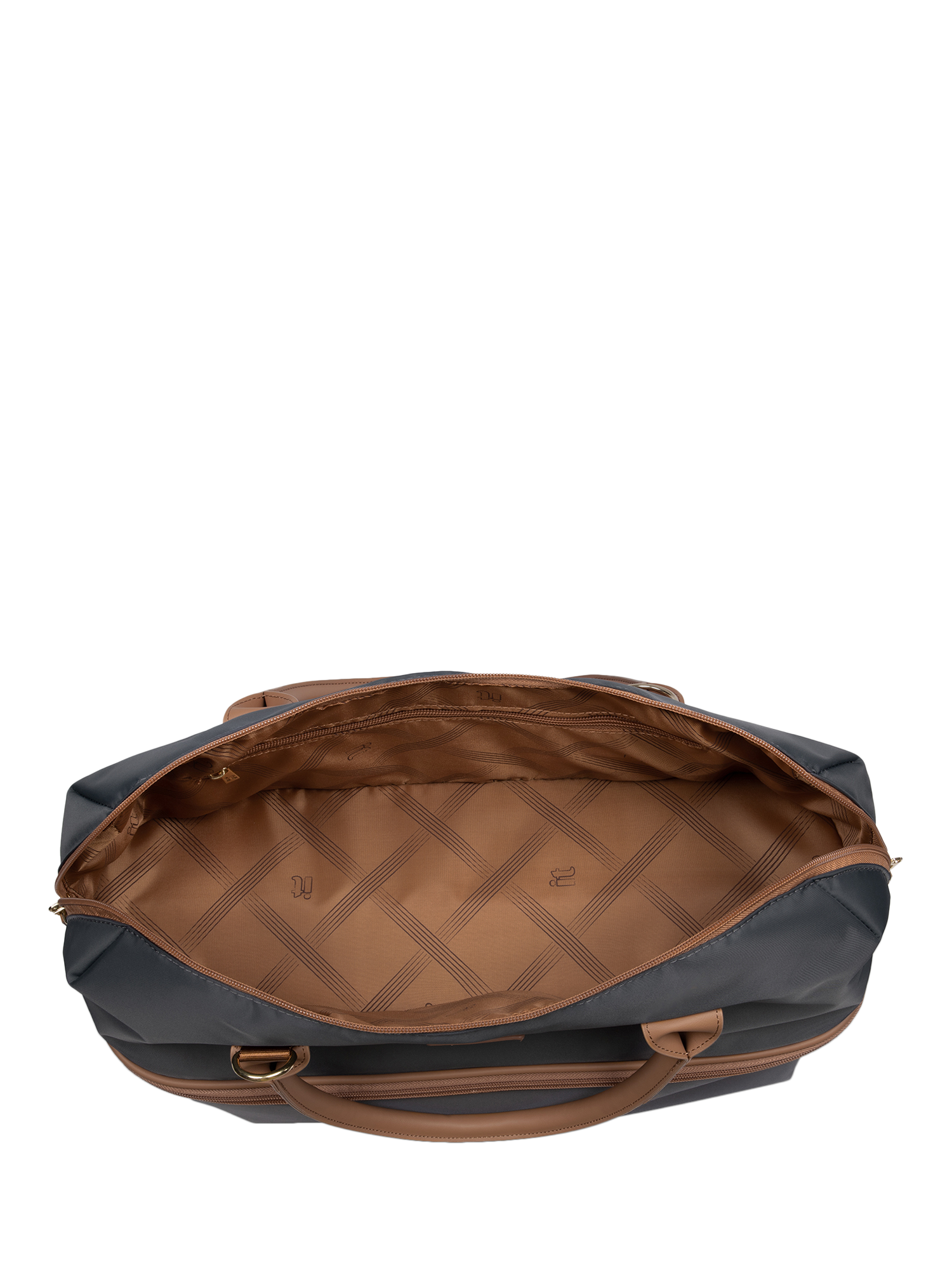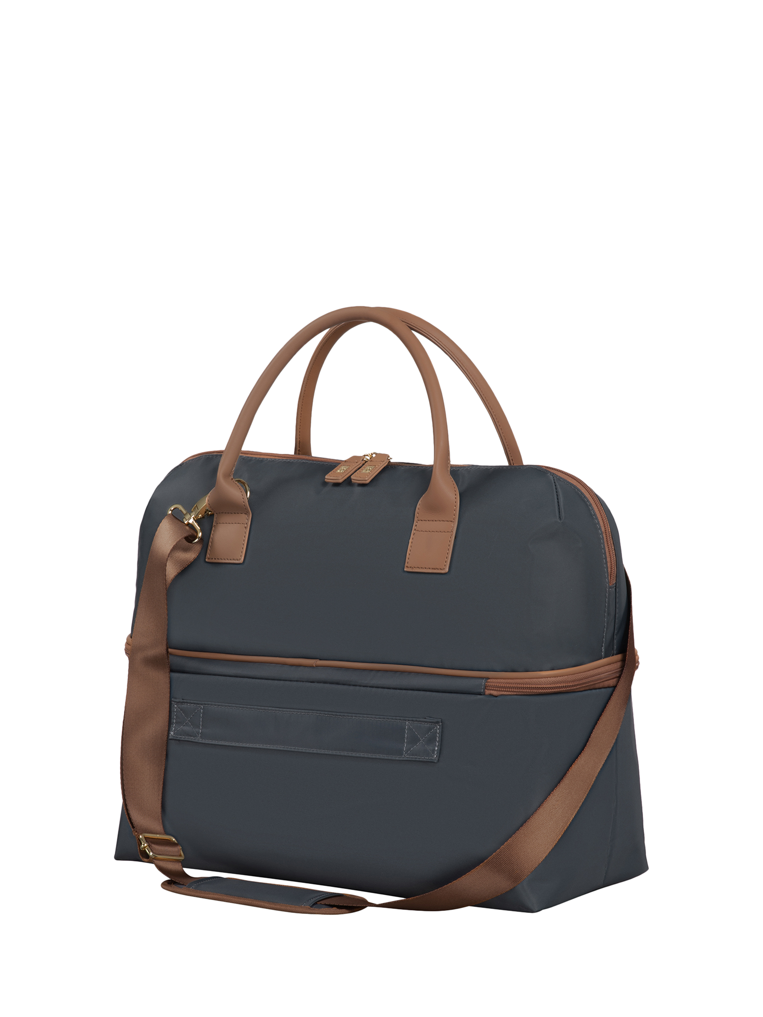 The holdall can also be mounted on any suitcase using the rear strap. With dual carry handles, a detachable shoulder strap, and a wide-opening top zip compartment, this bag is ready to keep you organised and effortlessly stylish while you travel in luxury.