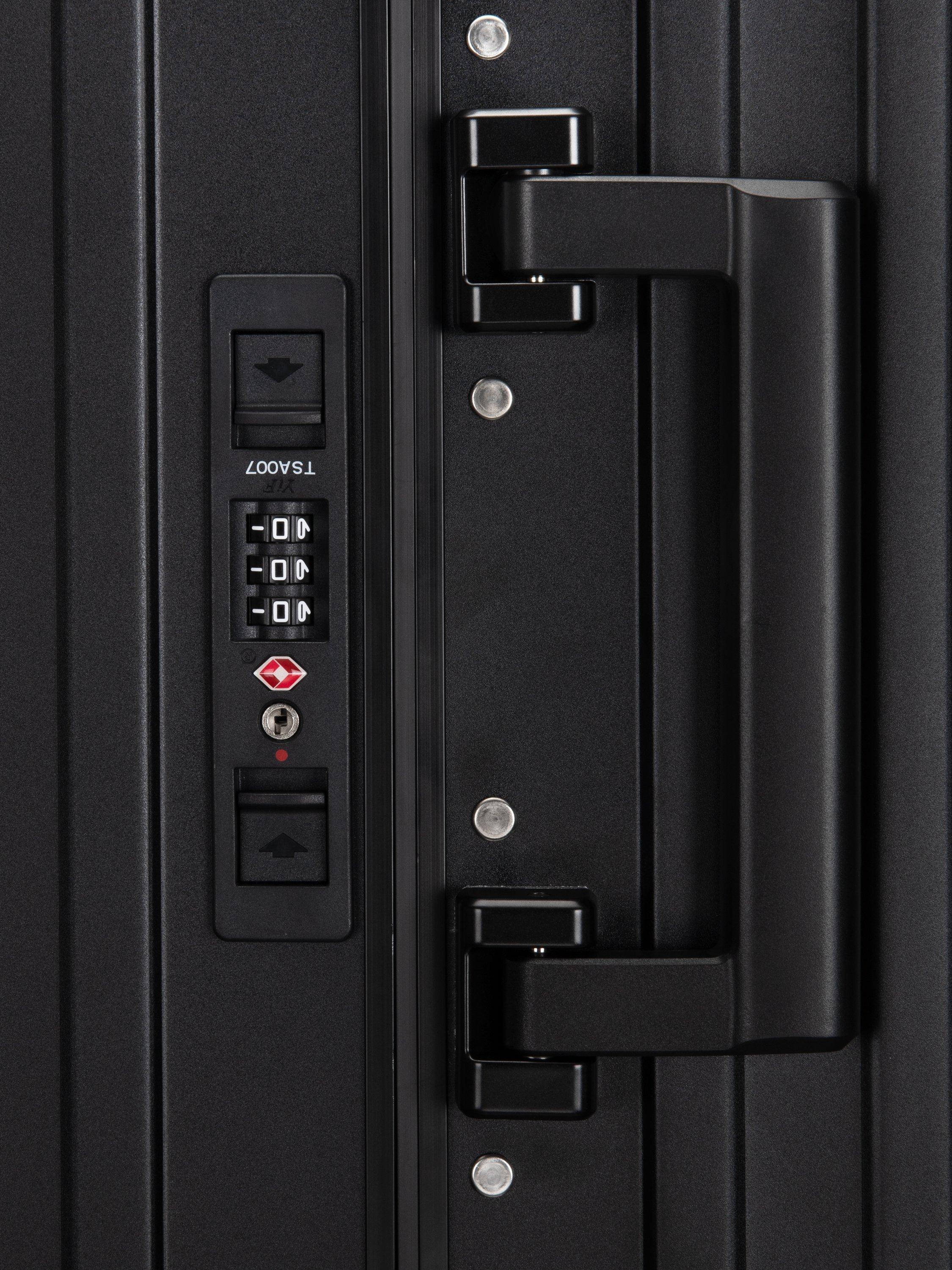 Inspired by iconic design and crafted for the modern traveller, the Forcefield delivers durability, security, and effortless organisation in one sleek package. Constructed from resilient aluminium and finished with a secure Travel Sentry approved lock, this case protects your belongings through every journey. Inside, the fully lined interior features smart storage solutions including a zippered pocket, segmented compartment, and compression straps to keep your items perfectly in place.