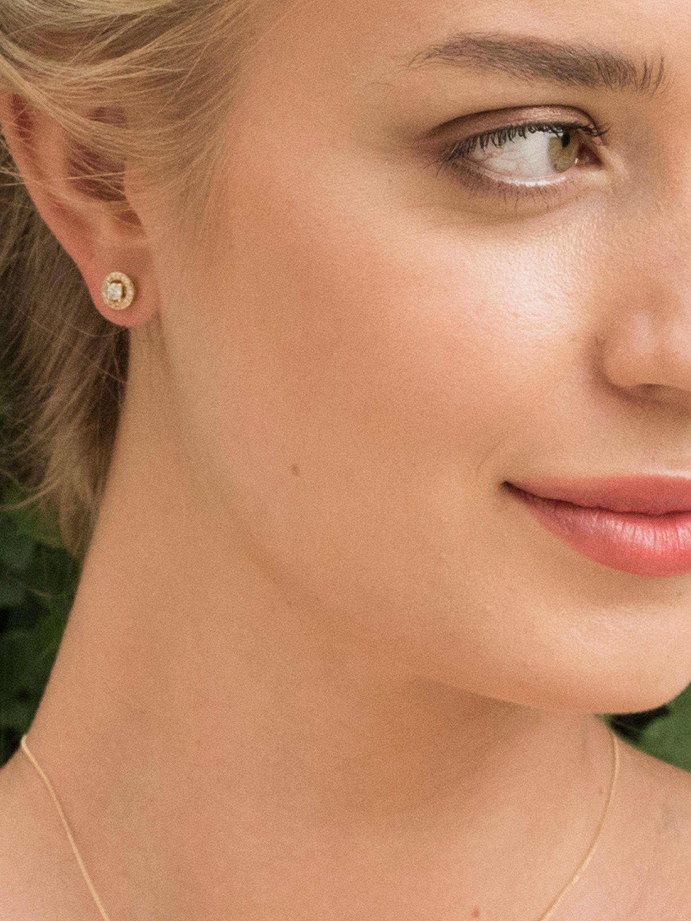 The small round shape reveals a set of faceted Zirconia Crystals (Triple A-rated simulated diamonds, facet cut for pure clarity and sparkle) that will certainly make you shine. The earrings are fitted with post fastenings that are for pierced ears only.