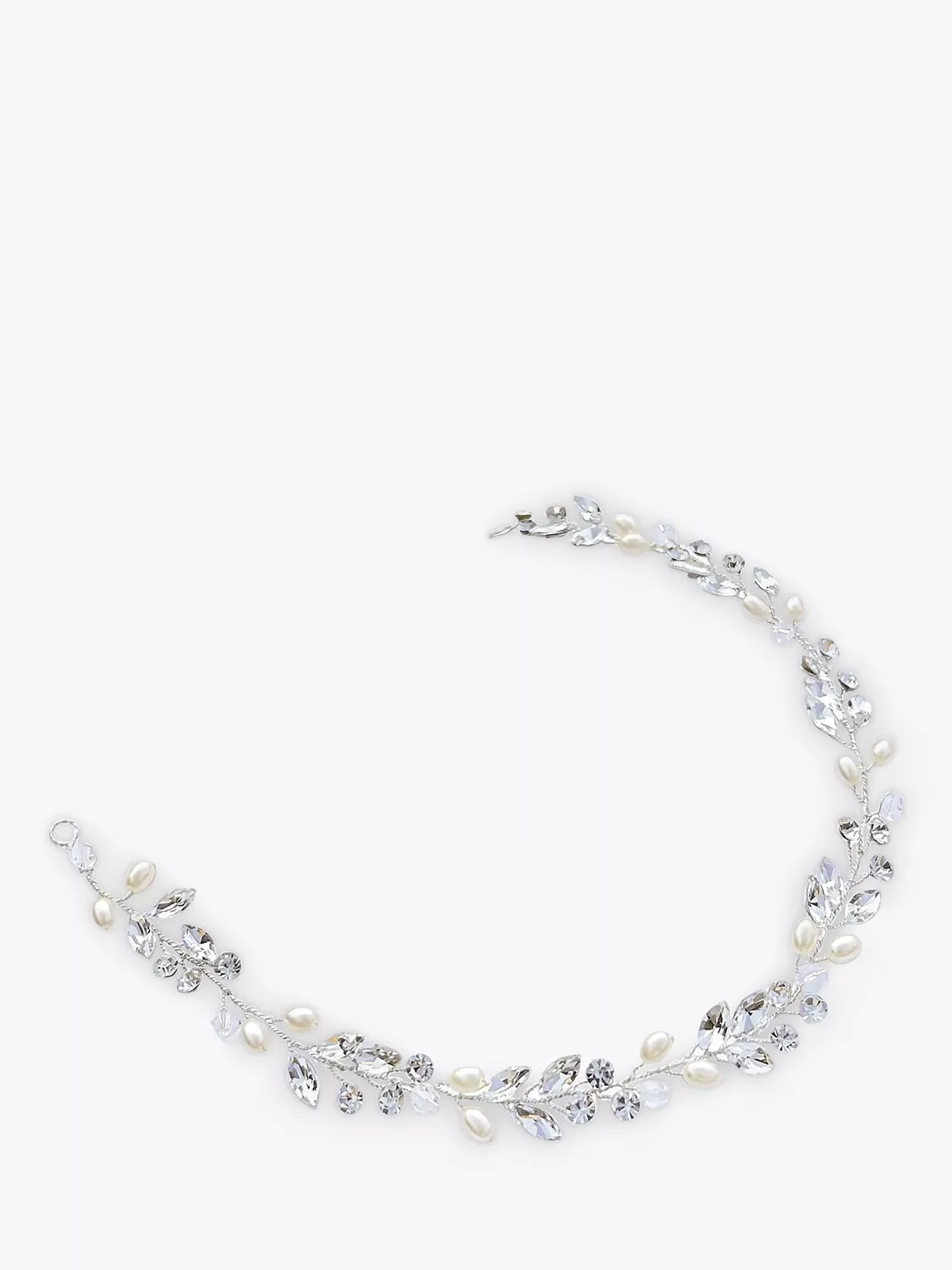 A pretty and delicate hair vine featuring cut solitaire and marquise Austrian crystals, set with ivory natural lustre manmade pearls in a stylised leafy pattern.