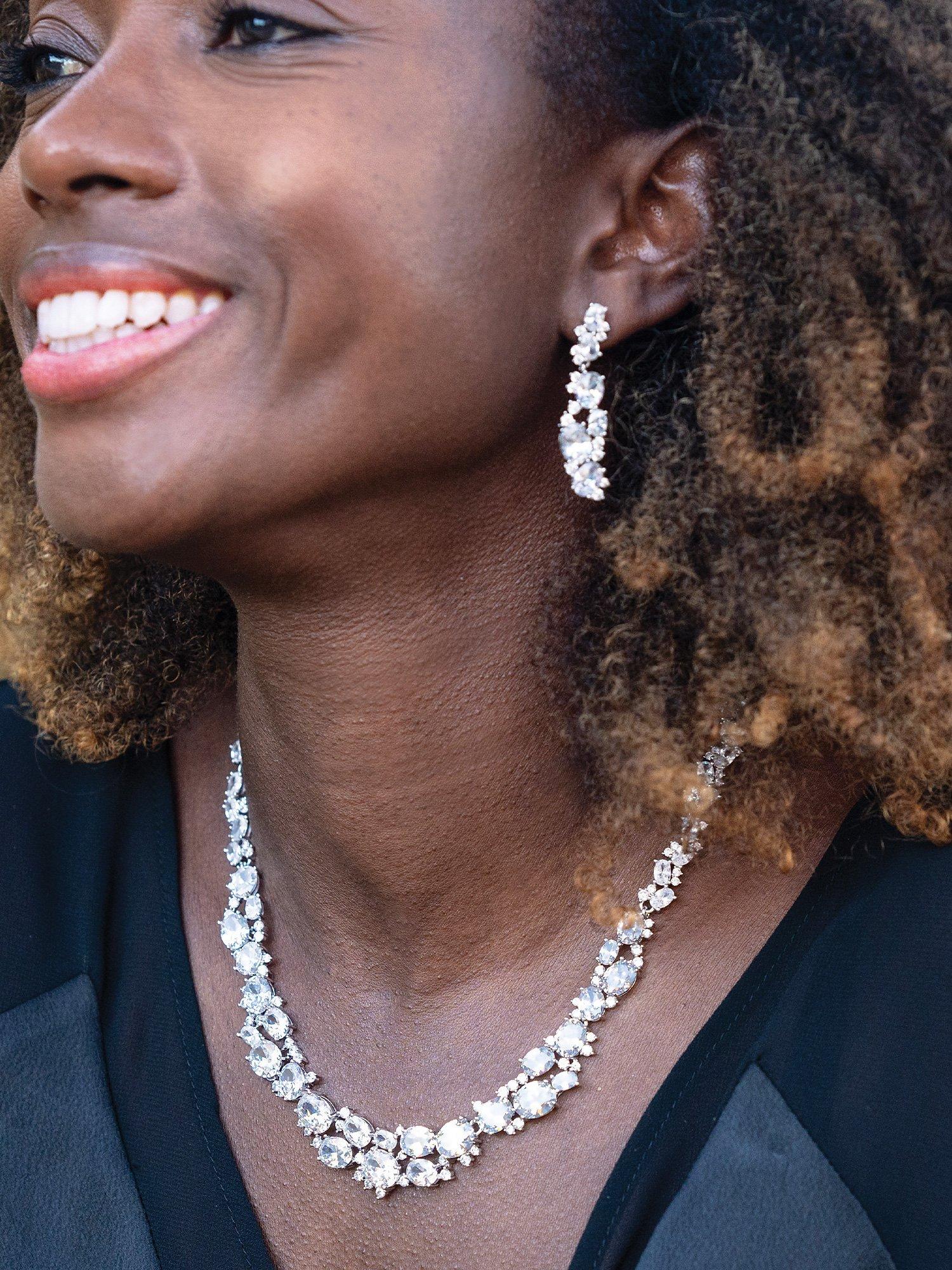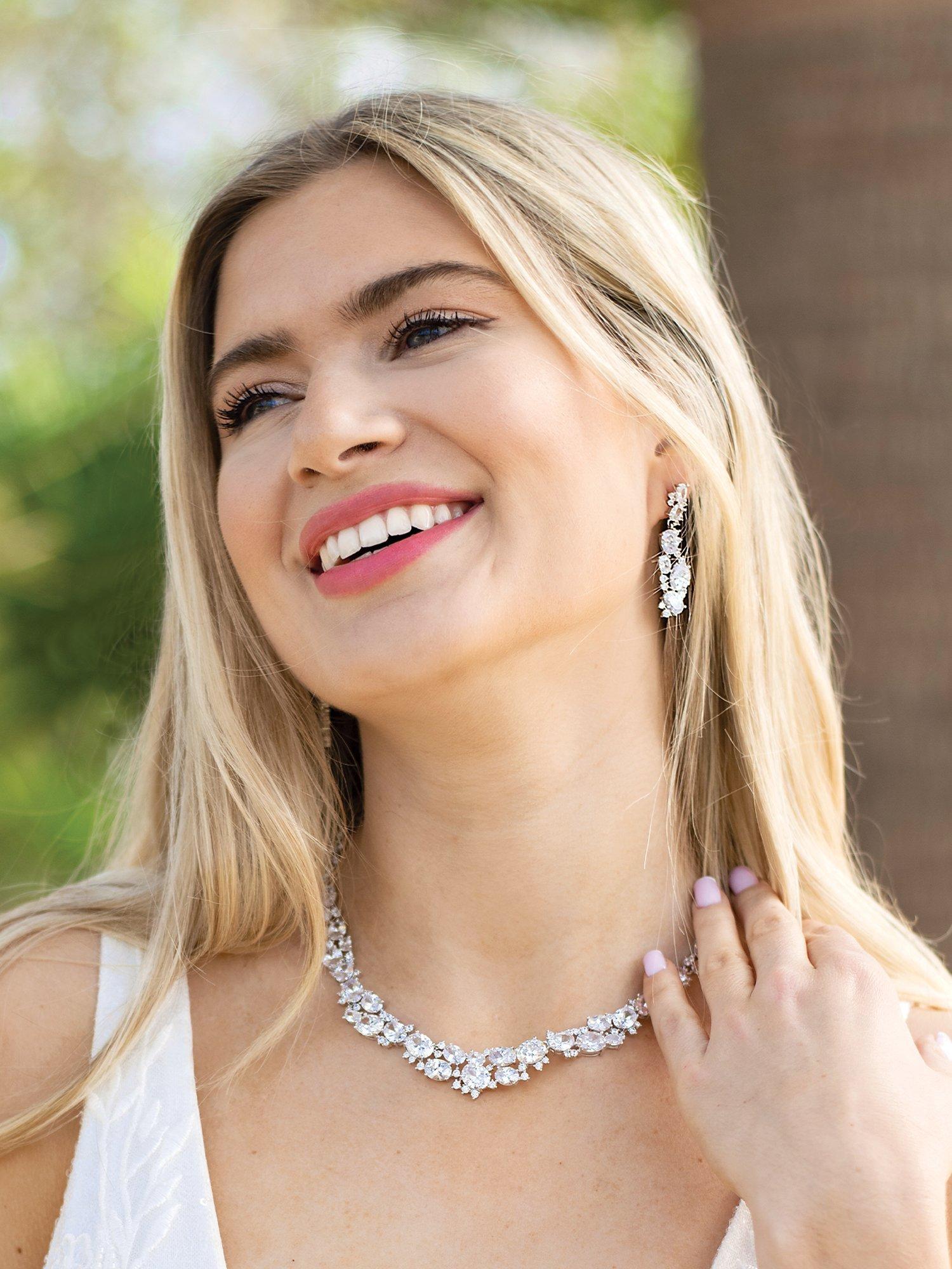 Creating a statement focal point, this collar necklace from Ivory & Co. is studded with cubic zirconia.