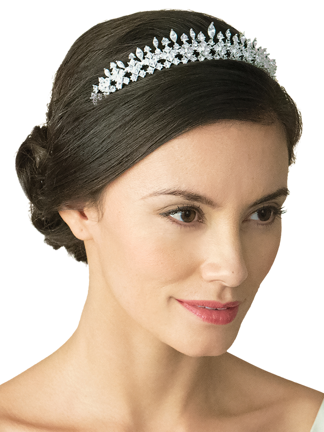 This vintage-style tiara is inspired by royal imperial crowns. Dazzling solitaire-cut stones are set in rows, tapering along the band and topped by brilliant marquise-cut crystals. Set with genuine Austrian crystals cut with facets to look and sparkle like real diamonds, it's an elegant and classic design that's an ideal bridal accessory, and will suit both traditional and contemporary gowns.