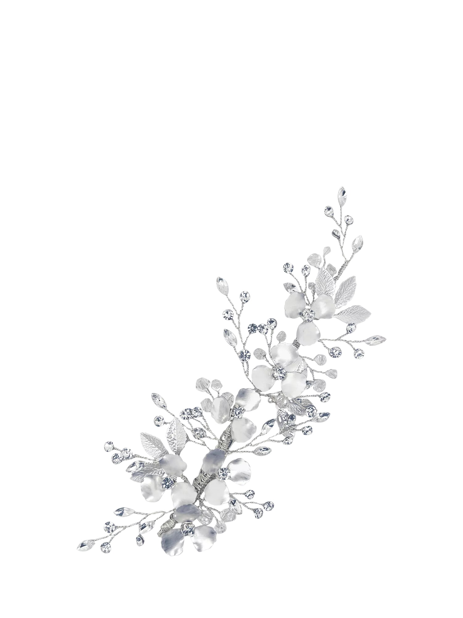 Set with genuine Austrian crystals that are cut both to look like real diamonds and as faceted beads for extra sparkle, this beautiful hair clip is an ideal accessory for brides, especially for beach or garden weddings. Crystals and delicate hand-enamelled leaves and petals are set in a boho vibe pattern, on flexible metal to allow for comfort. It can be worn at the side or back of the head and it's easy to secure, even in fine hair.