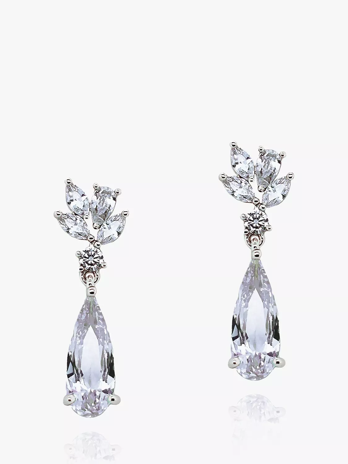 Made up of a delicate design of a stone cluster above a tear-cut stone, these earrings are elegant and versatile. They are set with triple A-rated zirconia crystals (simulated diamonds, facet cut for pure clarity and dazzling shine) and secured with post fittings that are for pierced ears only.