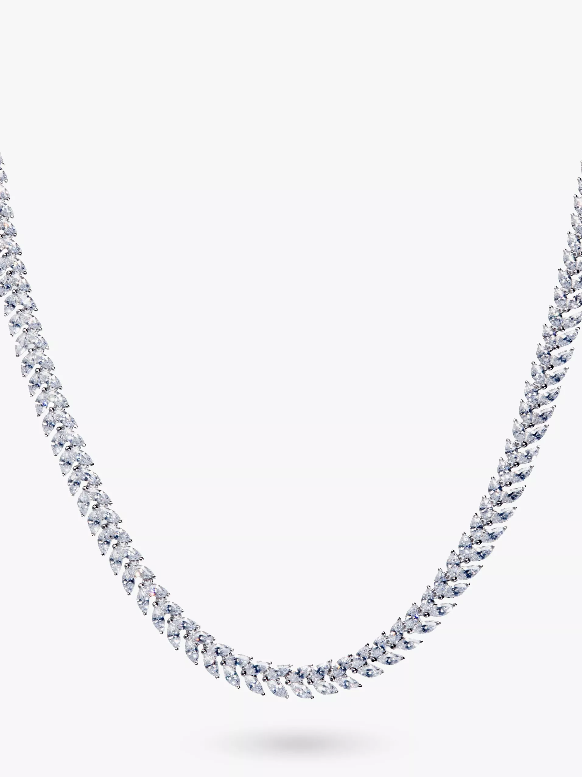The necklace has rhodium-plated structure and arrow-shaped accents set with faceted marquise-cut cubic zirconia. It fastens with a traditional clasp.