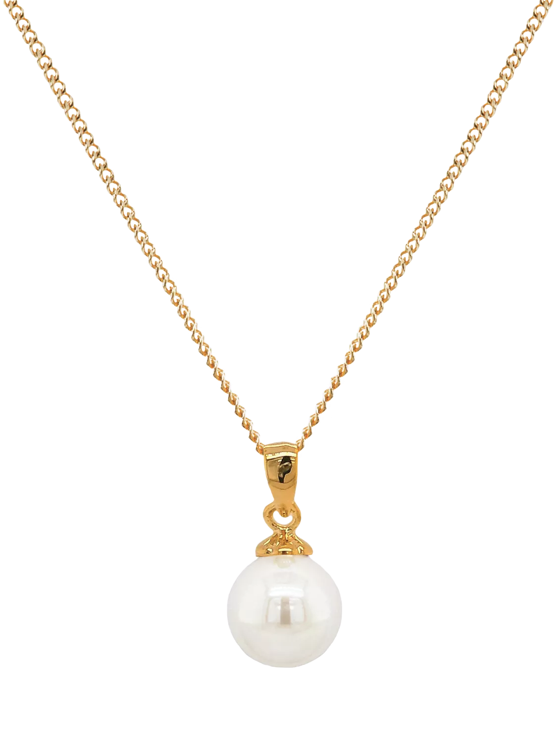 The classic pearl design and informal styling make this necklace ideal for the big day and every day after. It features a Natural Lustre manmade pearl suspended from a polished bail. The pendant comes complete with a matching fine Gourmette chain that can be adjusted in length.