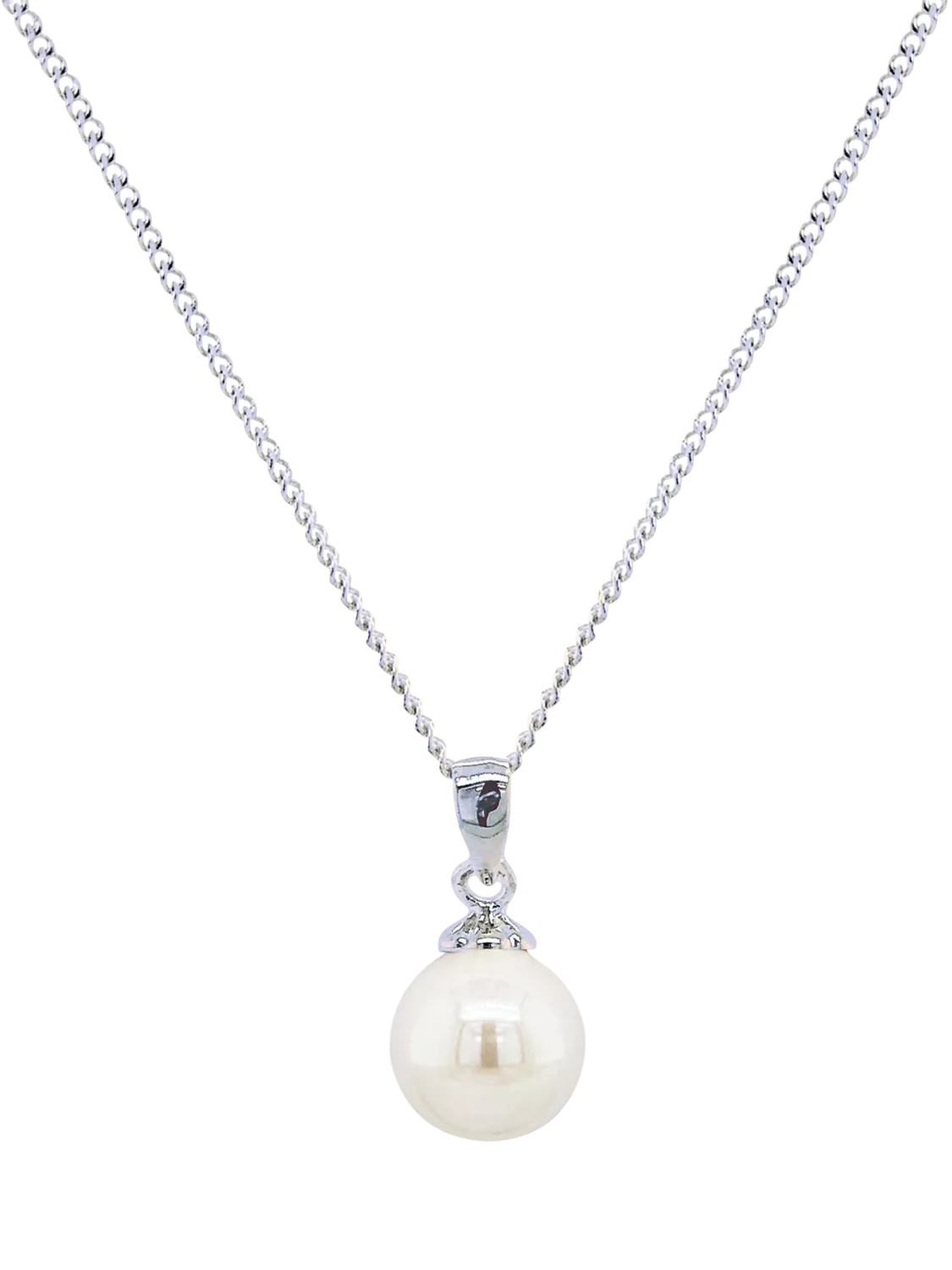 The classic pearl design and informal styling make this necklace ideal for the big day and every day after. It features a Natural Lustre manmade pearl suspended from a polished bail. The pendant comes complete with a matching fine Gourmette chain that can be adjusted in length.